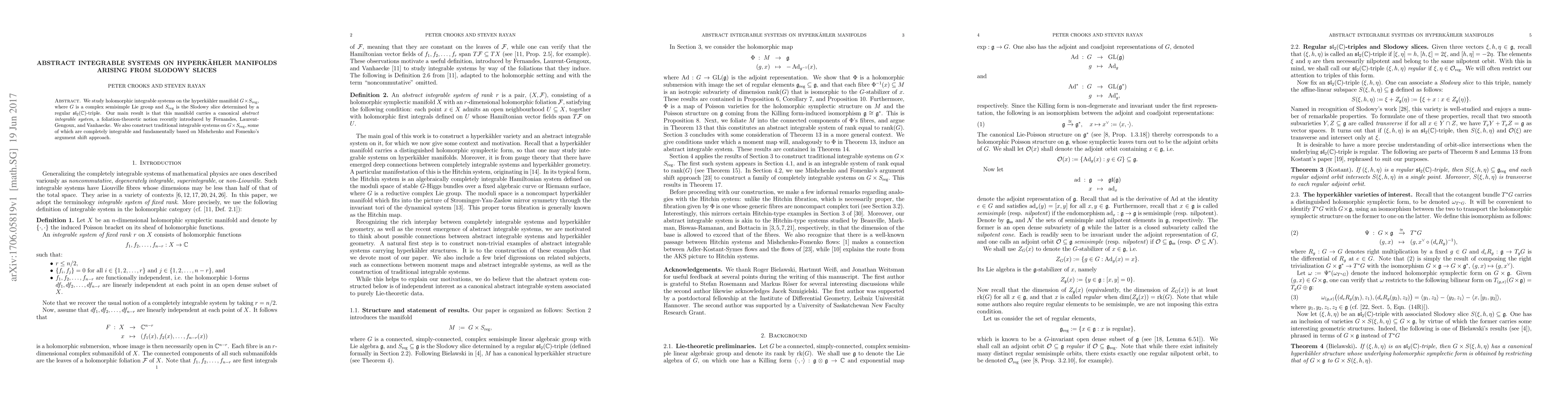 This paper investigates holomorphic integrable systems on the hyperkähler manifold $G\times S_{\text{reg}}$, where $G$ is a complex semisimple Lie group and $S_{\text{reg}}$ is a Slodowy slice. The authors demonstrate the existence of a canonical abstract integrable system on this manifold, and construct traditional integrable systems based on Mishchenko and Fomenko's argument shift approach.