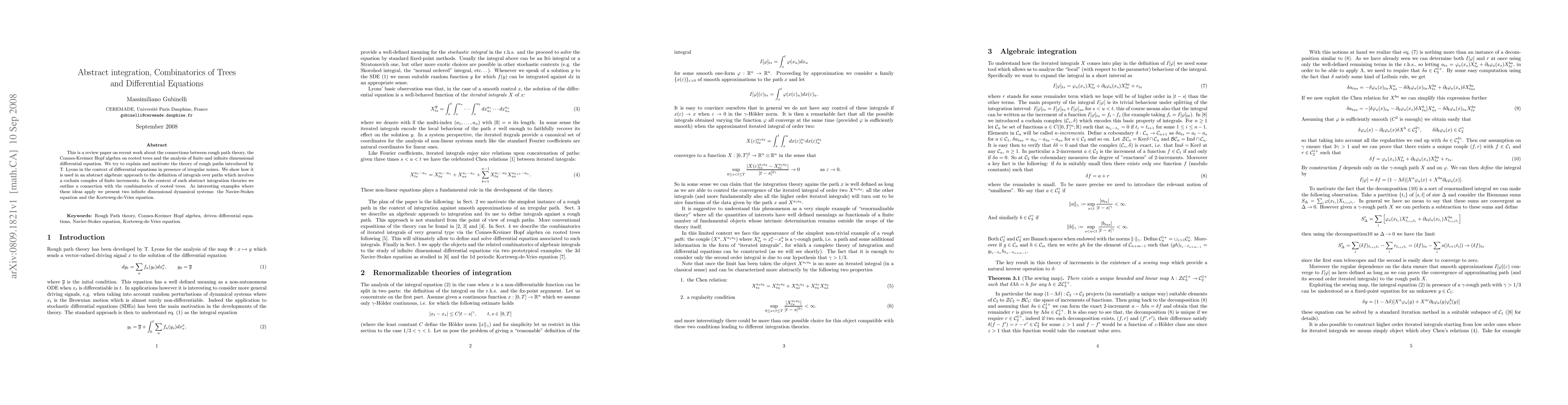 This paper reviews the interplay between rough path theory, Connes-Kreimer Hopf algebra on rooted trees, and the analysis of differential equations, highlighting their application in abstract integration and the study of infinite-dimensional dynamical systems like the Navier-Stokes and Korteweg-de-Vries equations.