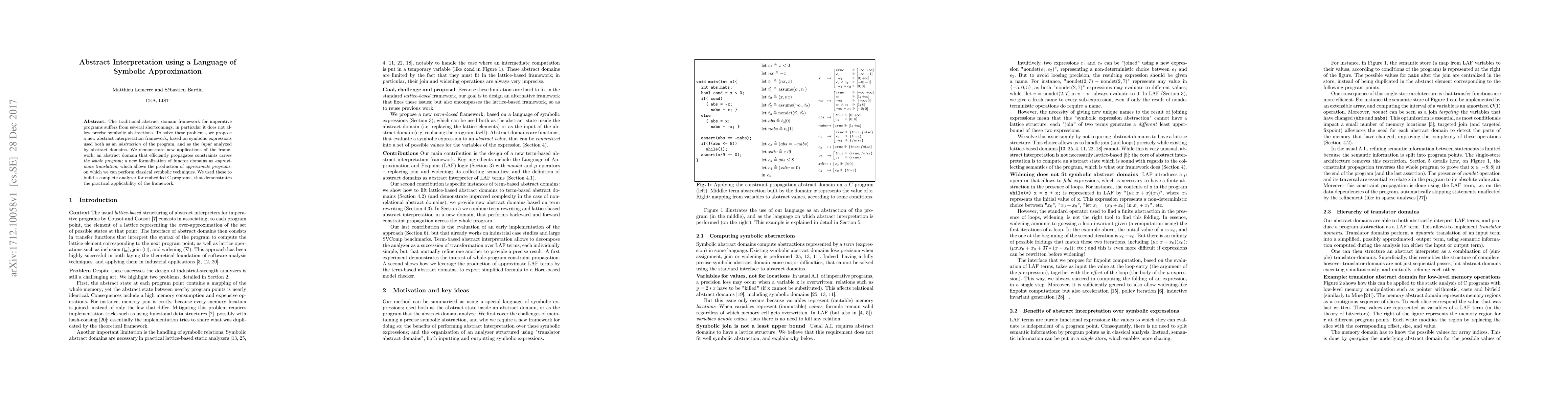 This paper proposes a new abstract interpretation framework using symbolic expressions to overcome the limitations of traditional abstract domains, demonstrating its application in constraint propagation and the creation of approximate programs for embedded C code analysis. The practical effectiveness of the framework is shown through the development of a complete analyzer.