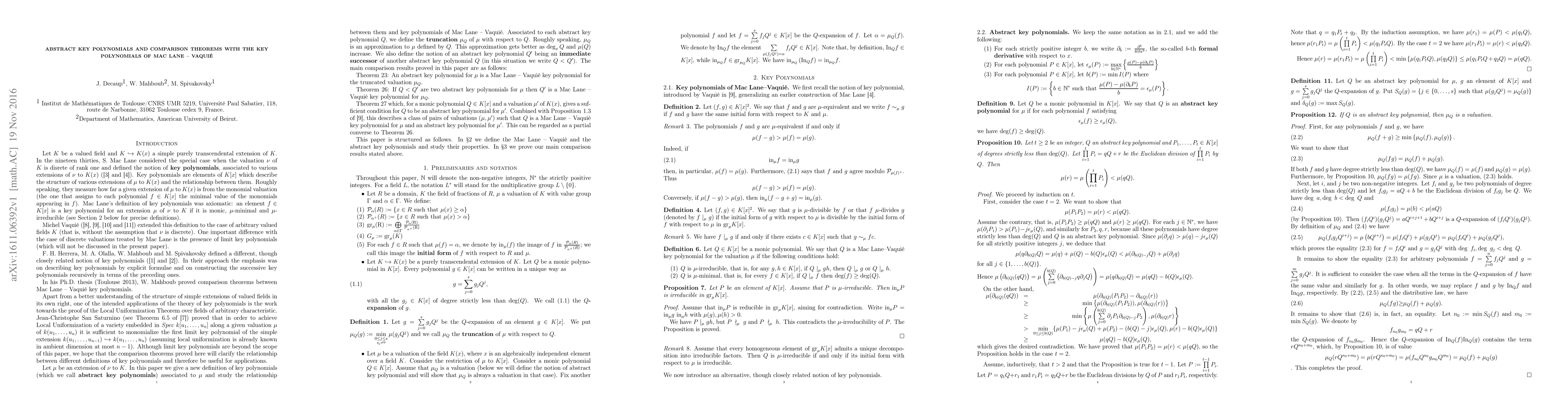by the key polynomial $Q$. We also define the notion of an abstract key