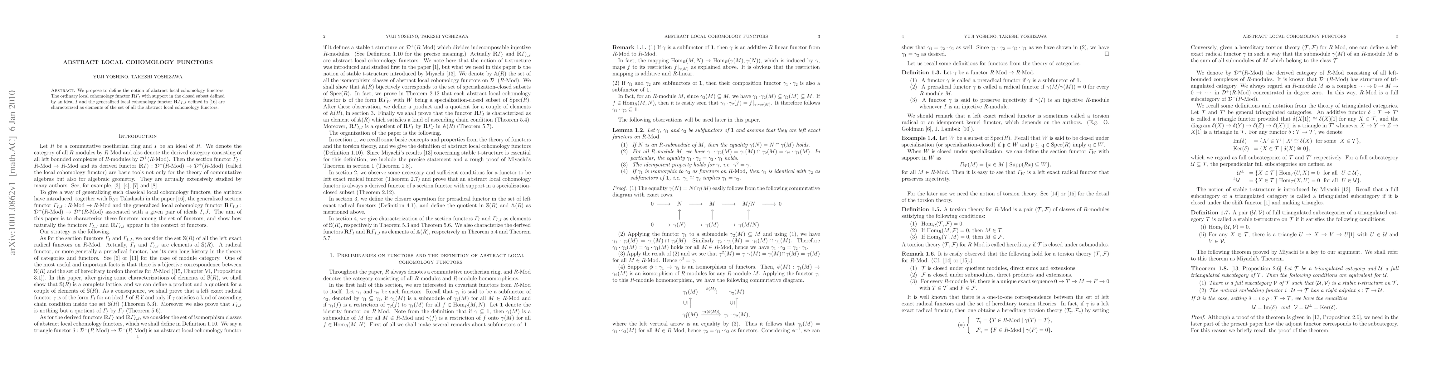 The paper introduces the concept of abstract local cohomology functors and characterizes derived functors of ordinary and generalized local cohomology in terms of these new functors. These new functors generalize the traditional local cohomology functors associated with ideals.