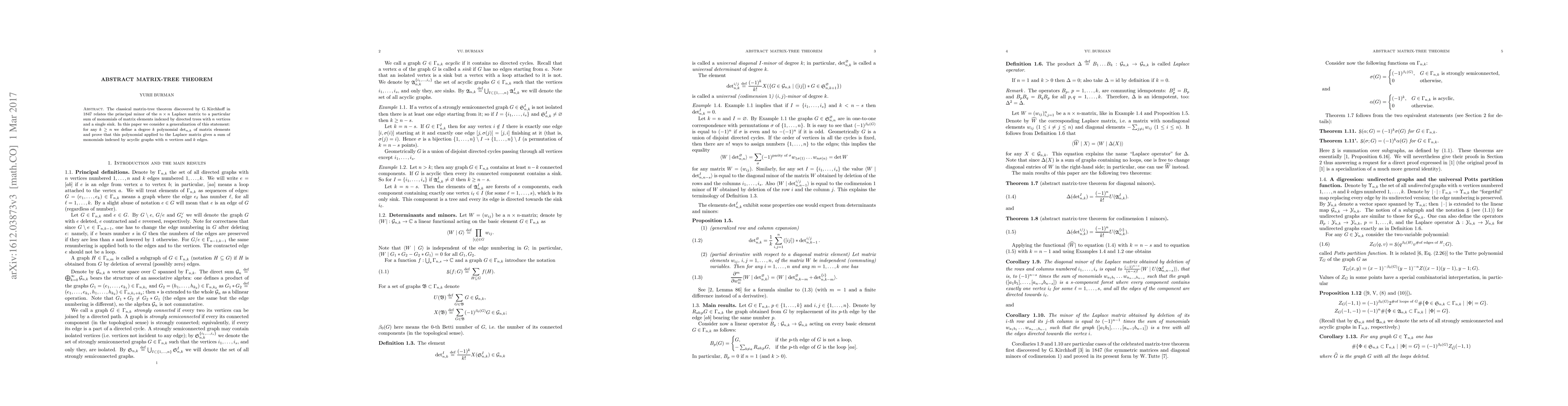 A generalization of Kirchhoff's matrix-tree theorem is proven, linking a degree k polynomial to sums of monomials indexed by acyclic graphs with n vertices and k edges. The result applies to any k >= n and expands on the original statement.