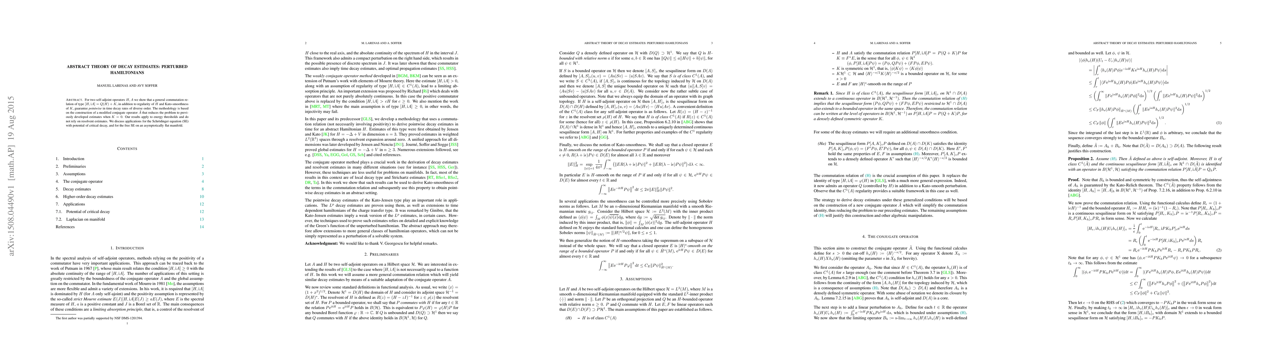 For two self-adjoint operators $H,A$ we show that a general commutation relation of type $[H,\mathrm{i}A]=Q(H)+K$, in addition to regularity of $H$ and Kato-smoothness of $K$, guarantee pointwise in time decay rates of diverse order. The methodology is based on the construction of a modified conjugate operator $\tilde{A}$ that reduces the problem to previously developed estimates when $K=0$. Our results apply to energy thresholds and do not rely on resolvent estimates. We discuss applications for the Schr\"odinger equation (SE) with potential of critical decay, and for the free SE on an asymptotically flat manifold.