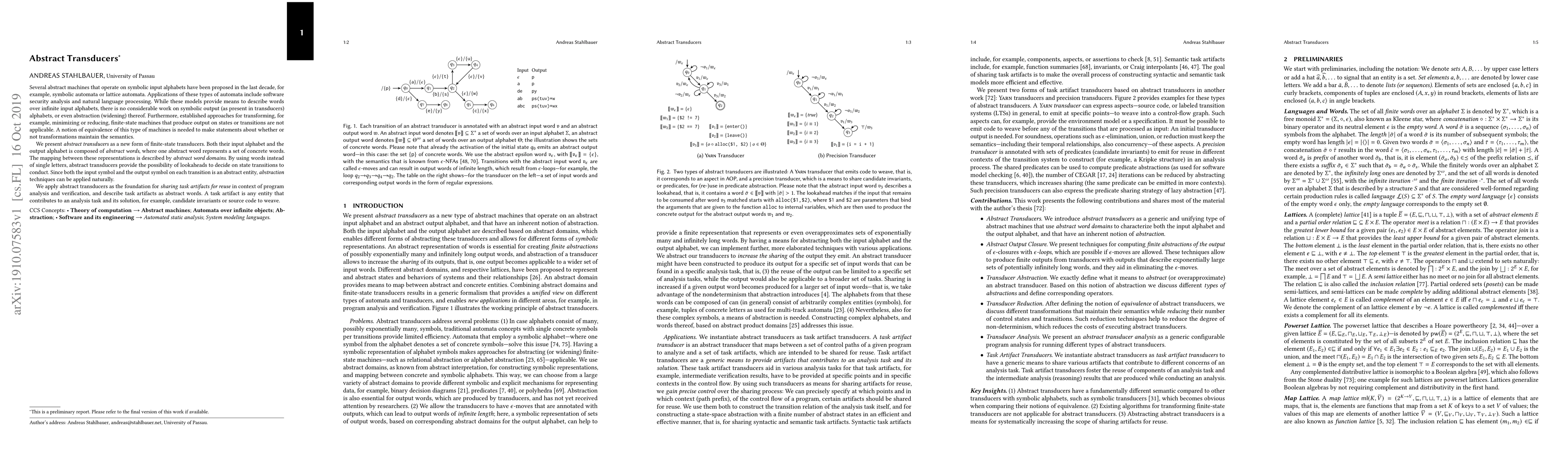 Researchers propose abstract transducers as a new form of finite-state machines that process symbolic input and output, enabling lookaheads and abstraction techniques for efficient analysis and verification tasks.