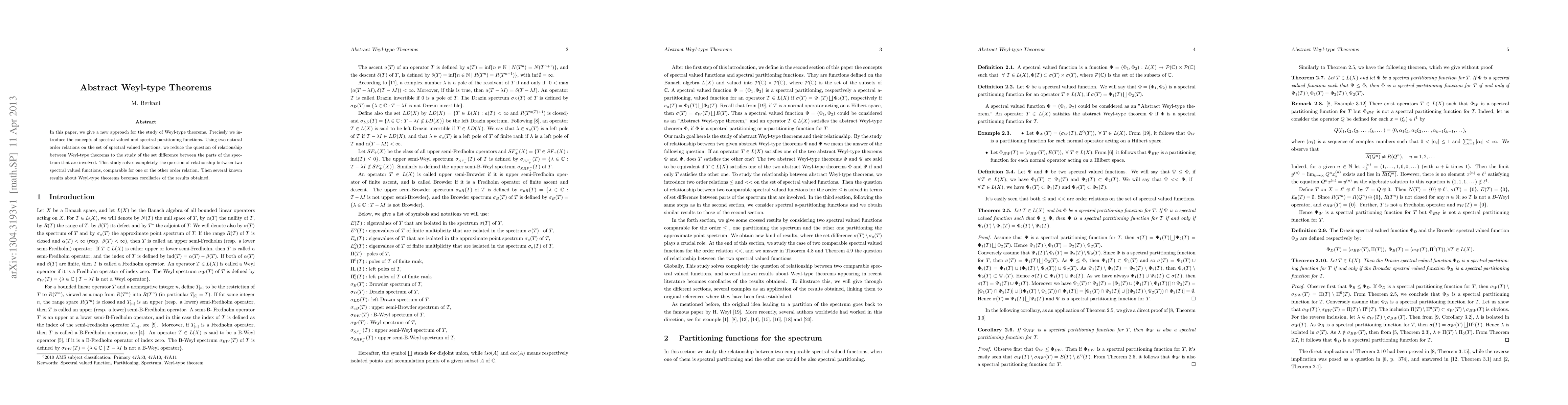 The paper introduces new concepts of spectral valued and spectral partitioning functions, reducing the study of Weyl-type theorems to the analysis of the set difference between spectrum parts involved, using two natural order relations.
