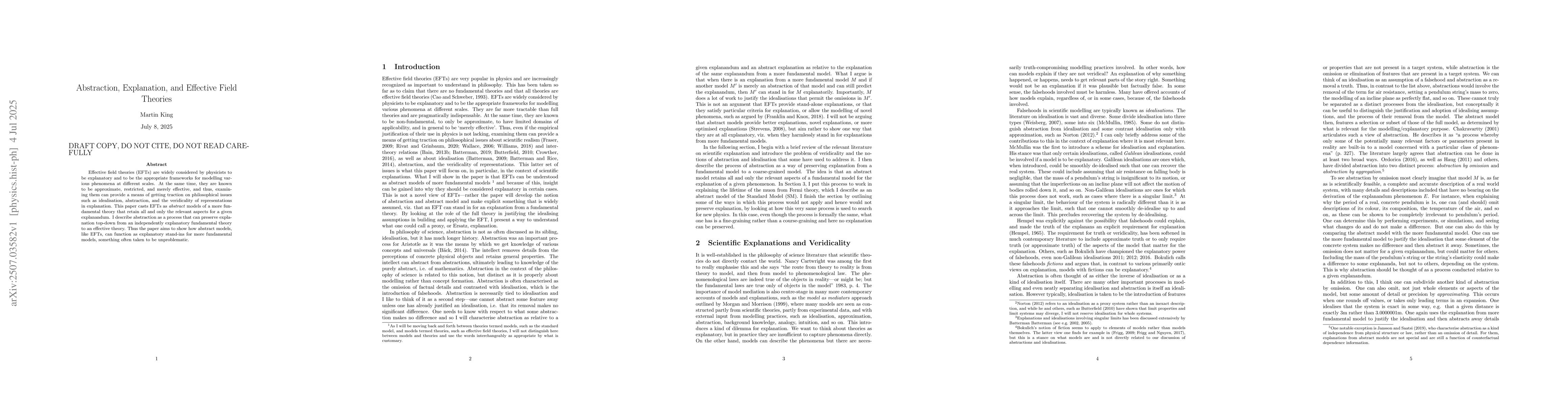 Effective field theories (EFTs) are widely considered by physicists to be explanatory and to be the appropriate frameworks for modelling various phenomena at different scales. At the same time, they are known to be approximate, restricted, and merely effective, and thus, examining them can provide a means of getting traction on philosophical issues such as idealisation, abstraction, and the veridicality of representations in explanation. This paper casts EFTs as \textit{abstract} models of a more fundamental theory that retain all and only the relevant aspects for a given explanandum. I describe abstraction as a process that can preserve explanation top-down from an independently explanatory fundamental theory to an effective theory. Thus the paper aims to show how abstract models, like EFTs, can function as explanatory stand-ins for more fundamental models, something often taken to be unproblematic.
