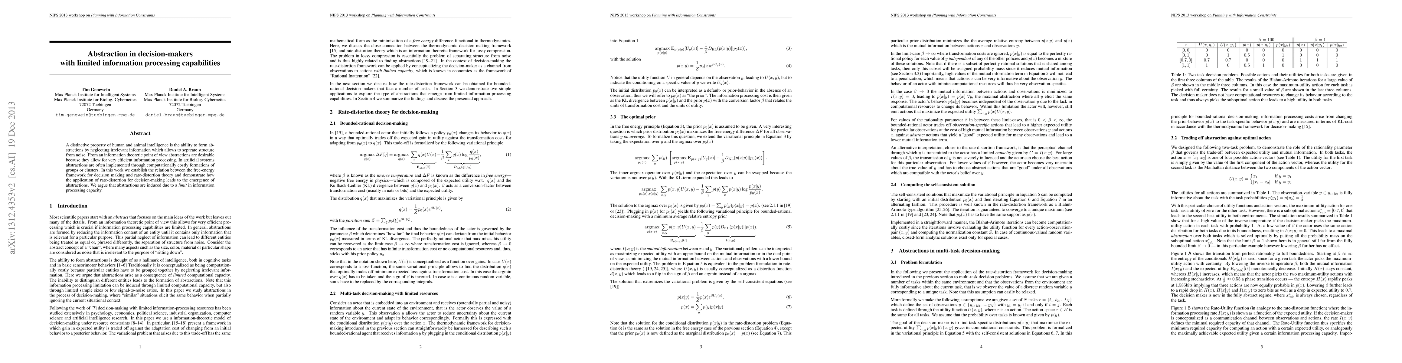 This paper explores how abstractions emerge in decision-making systems with limited information processing capabilities, linking the free-energy framework to rate-distortion theory and demonstrating that abstractions arise due to constraints on processing capacity.