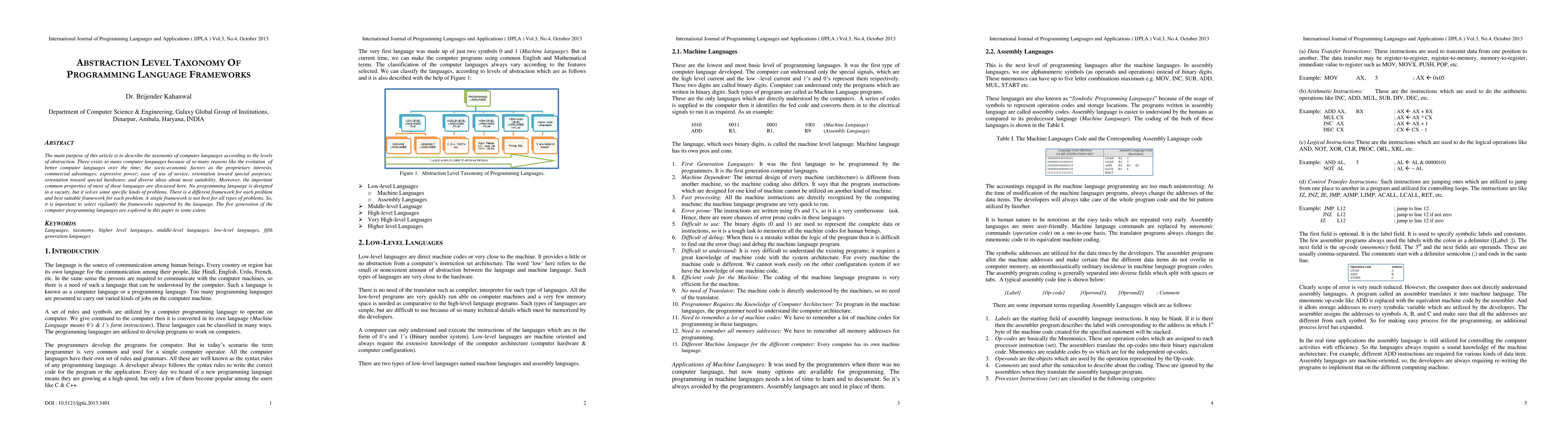 This paper explores the taxonomy of programming language frameworks based on abstraction levels, highlighting key properties and the importance of selecting suitable frameworks for specific problems. It discusses the five generations of computer programming languages and their unique characteristics.