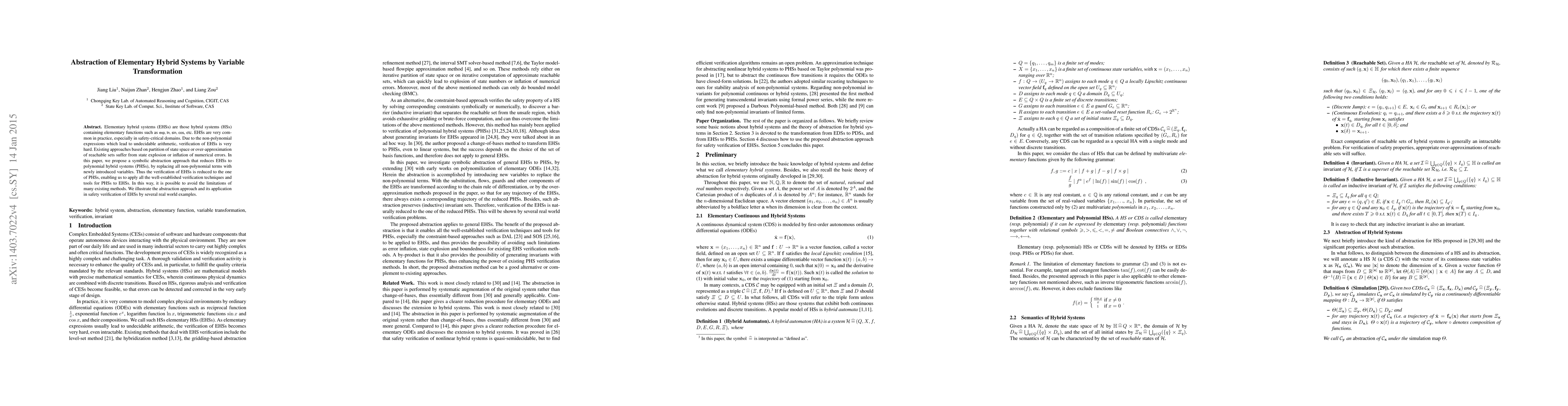 Elementary hybrid systems (EHSs) are those hybrid systems (HSs) containing elementary functions such as exp, ln, sin, cos, etc. EHSs are very common in practice, especially in safety-critical domains. Due to the non-polynomial expressions which lead to undecidable arithmetic, verification of EHSs is very hard. Existing approaches based on partition of state space or over-approximation of reachable sets suffer from state explosion or inflation of numerical errors. In this paper, we propose a symbolic abstraction approach that reduces EHSs to polynomial hybrid systems (PHSs), by replacing all non-polynomial terms with newly introduced variables. Thus the verification of EHSs is reduced to the one of PHSs, enabling us to apply all the well-established verification techniques and tools for PHSs to EHSs. In this way, it is possible to avoid the limitations of many existing methods. We illustrate the abstraction approach and its application in safety verification of EHSs by several real world examples.