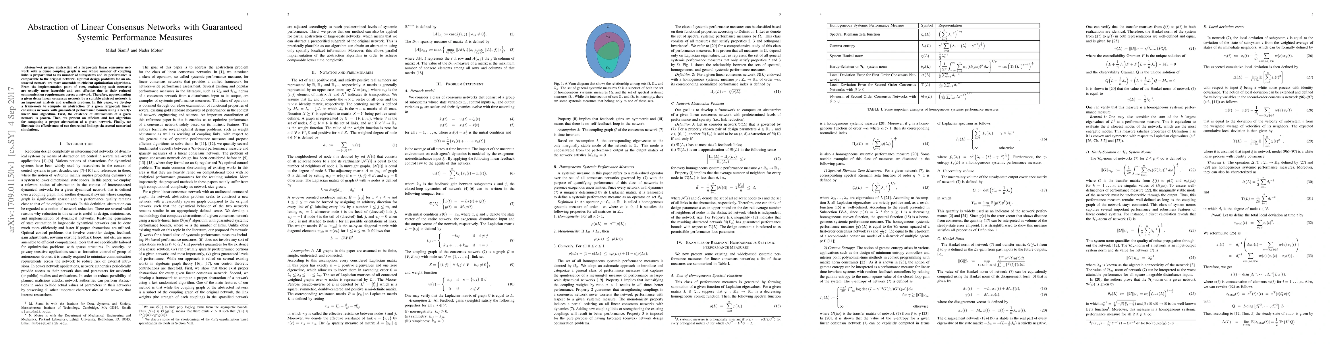 This paper develops a framework to compute an abstraction of a large-scale linear consensus network with guaranteed performance bounds, allowing for efficient optimization and reduced communication requirements.