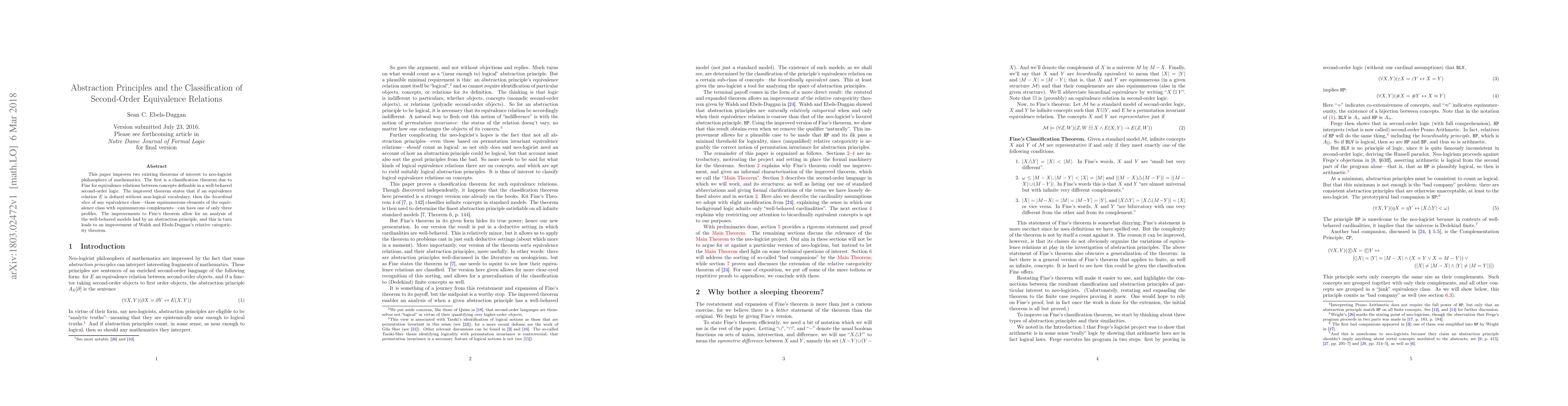 This paper improves two existing theorems of interest to neo-logicist philosophers of mathematics. The first is a classification theorem due to Fine for equivalence relations between concepts definable in a well-behaved second-order logic. The improved theorem states that if an equivalence relation $E$ is defined without non-logical vocabulary, then the bicardinal slice of any equivalence class---those equinumerous elements of the equivalence class with equinumerous complements---can have one of only three profiles. The improvements to Fine's theorem allow for an analysis of the well-behaved models had by an abstraction principle, and this in turn leads to an improvement of Walsh and Ebels-Duggan's relative categoricity theorem.
