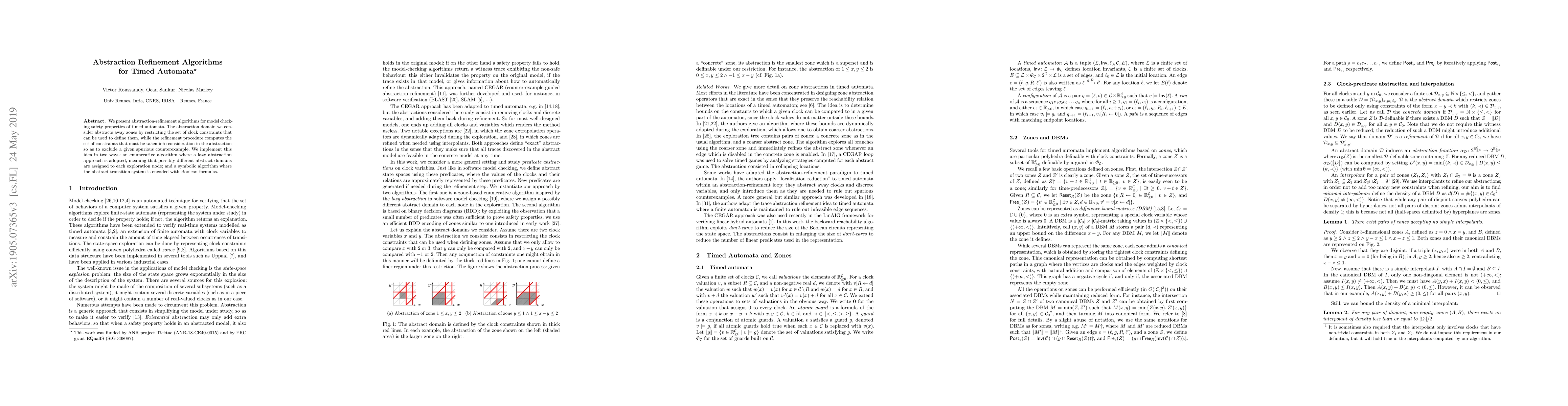 This paper introduces abstraction-refinement algorithms for verifying safety properties in timed automata. It employs two methods: an enumerative algorithm with lazy abstraction and a symbolic algorithm using Boolean formulas for the abstract transition system.