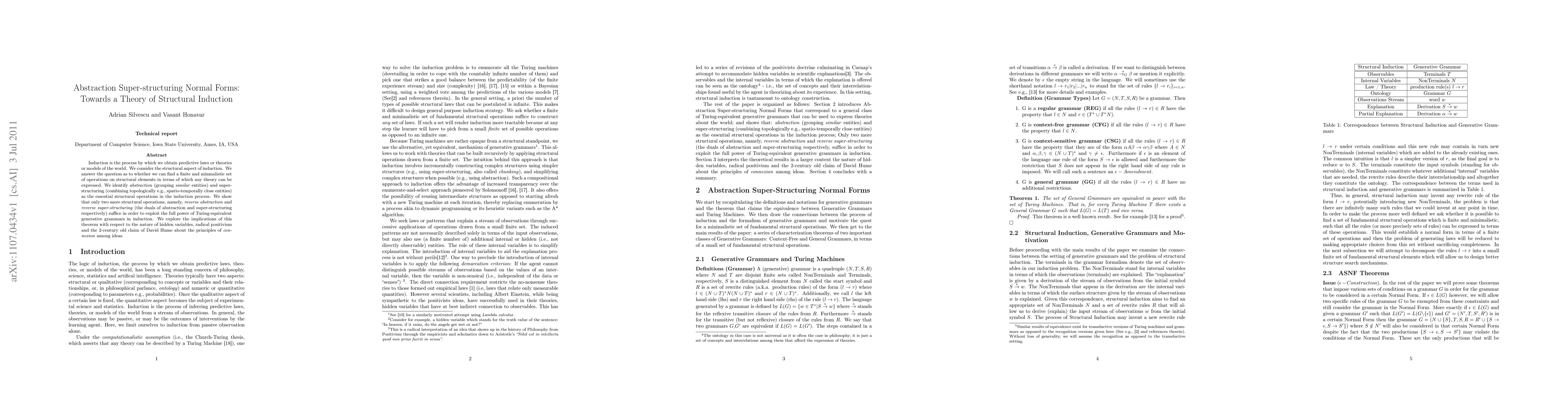 This paper explores the structural aspect of induction, identifying abstraction and super-structuring as key operations. It demonstrates that reverse abstraction and reverse super-structuring are sufficient to fully utilize Turing-equivalent generative grammars, with implications for hidden variables, positivism, and Hume's principles of connexion among ideas.