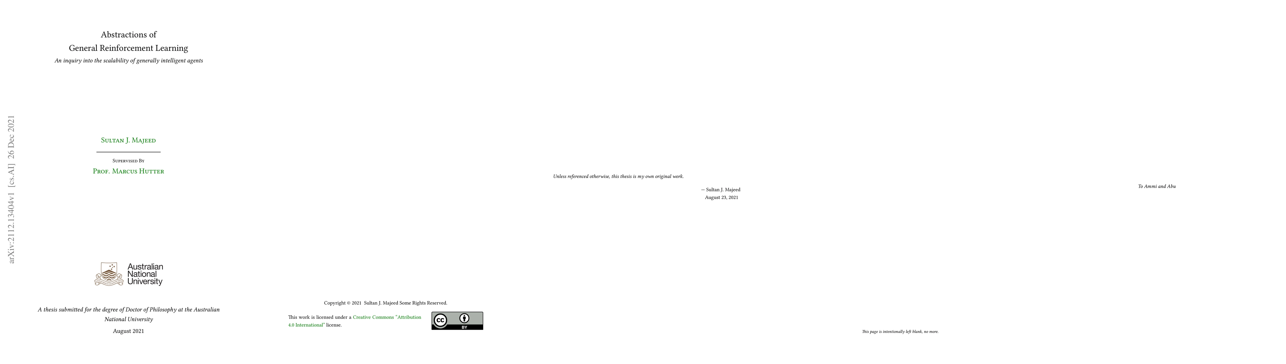 The field of artificial intelligence (AI) is devoted to the creation of artificial decision-makers that can perform (at least) on par with the human counterparts on a domain of interest. Unlike the agents in traditional AI, the agents in artificial general intelligence (AGI) are required to replicate human intelligence in almost every domain of interest. Moreover, an AGI agent should be able to achieve this without (virtually any) further changes, retraining, or fine-tuning of the parameters. The real world is non-stationary, non-ergodic, and non-Markovian: we, humans, can neither revisit our past nor are the most recent observations sufficient statistics. Yet, we excel at a variety of complex tasks. Many of these tasks require longterm planning. We can associate this success to our natural faculty to abstract away task-irrelevant information from our overwhelming sensory experience. We make task-specific mental models of the world without much effort. Due to this ability to abstract, we can plan on a significantly compact representation of a task without much loss of performance. Not only this, we also abstract our actions to produce high-level plans: the level of action-abstraction can be anywhere between small muscle movements to a mental notion of "doing an action". It is natural to assume that any AGI agent competing with humans (at every plausible domain) should also have these abilities to abstract its experiences and actions. This thesis is an inquiry into the existence of such abstractions which aid efficient planing for a wide range of domains, and most importantly, these abstractions come with some optimality guarantees.