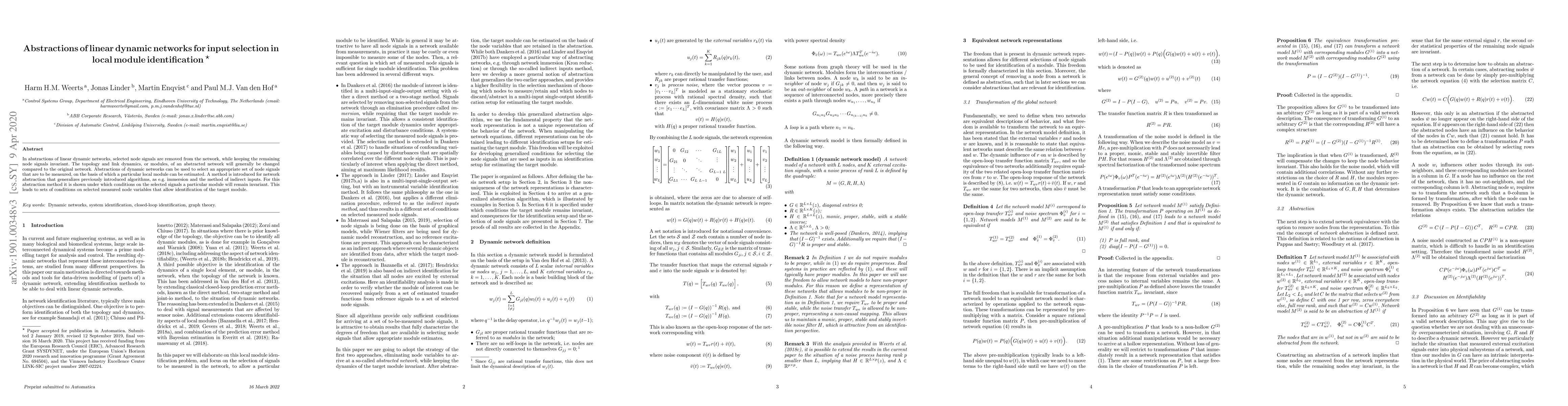 This paper introduces a generalized abstraction method for linear dynamic networks to identify and select appropriate node signals for estimating specific local modules. It provides conditions under which selected signals can maintain module invariance, facilitating targeted module identification.