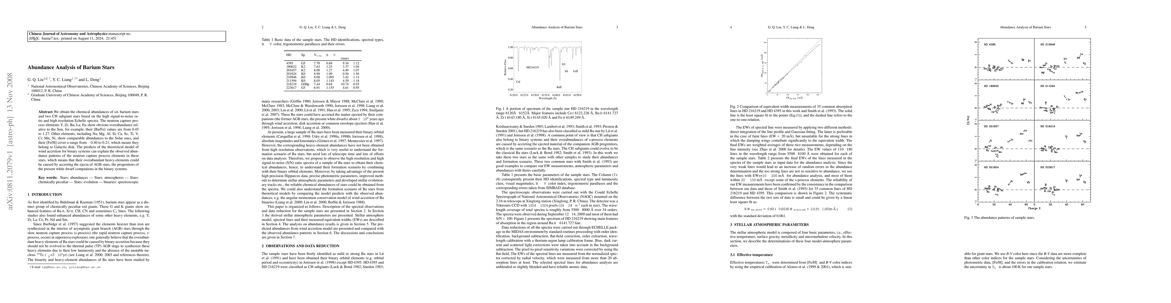 Researchers analyzed 6 barium stars and 2 CH subgiant stars to find they have high levels of certain heavy elements like barium, strontium, and lanthanum, which were likely acquired from the ejecta of AGB stars in binary systems.