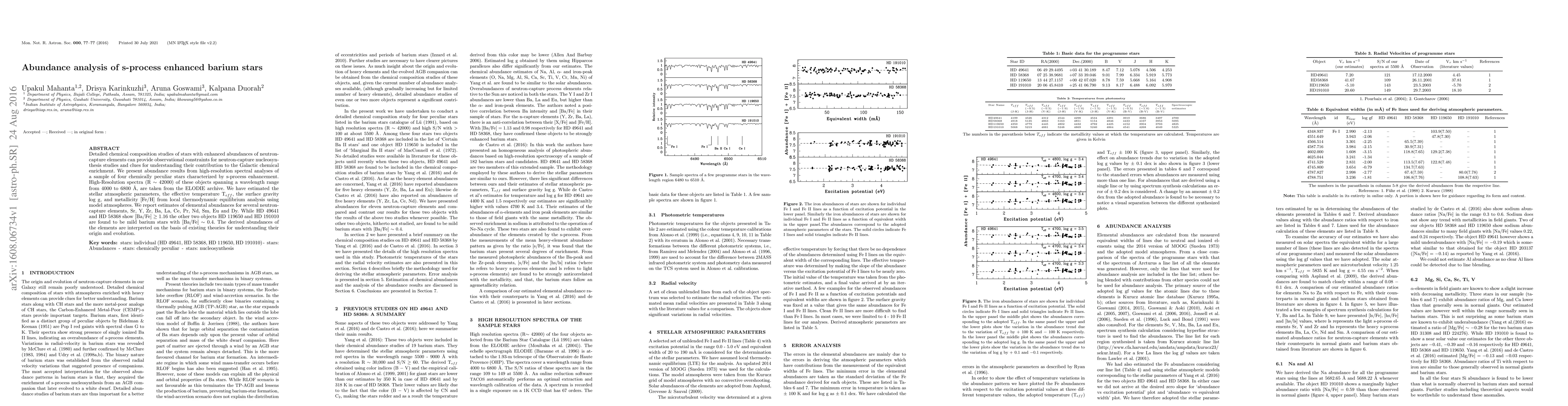 Researchers analyzed four stars with enhanced s-process elements like barium to better understand their chemical enrichment in the galaxy, finding varying levels of barium enhancement among the stars.