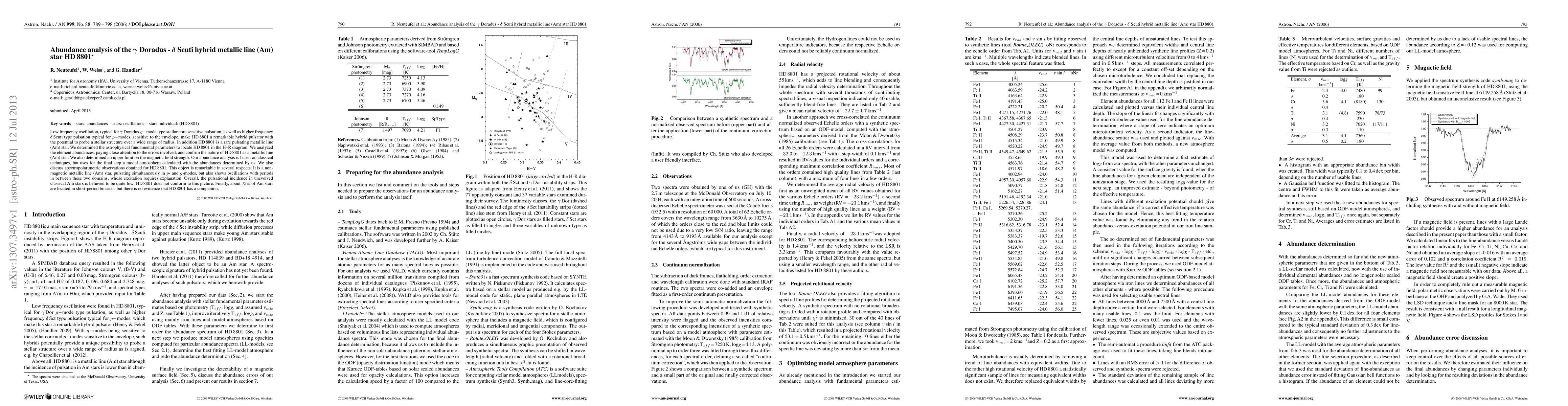 This paper analyzes the hybrid pulsator HD 8801, which exhibits both Gamma Doradus and Delta Scuti pulsations, making it a unique probe of stellar structure. The study confirms HD 8801 as a non-magnetic metallic line (Am) star and determines its astrophysical parameters, element abundances, and an upper limit on its magnetic field strength, revealing its unusual pulsation characteristics and lack of a binary companion.