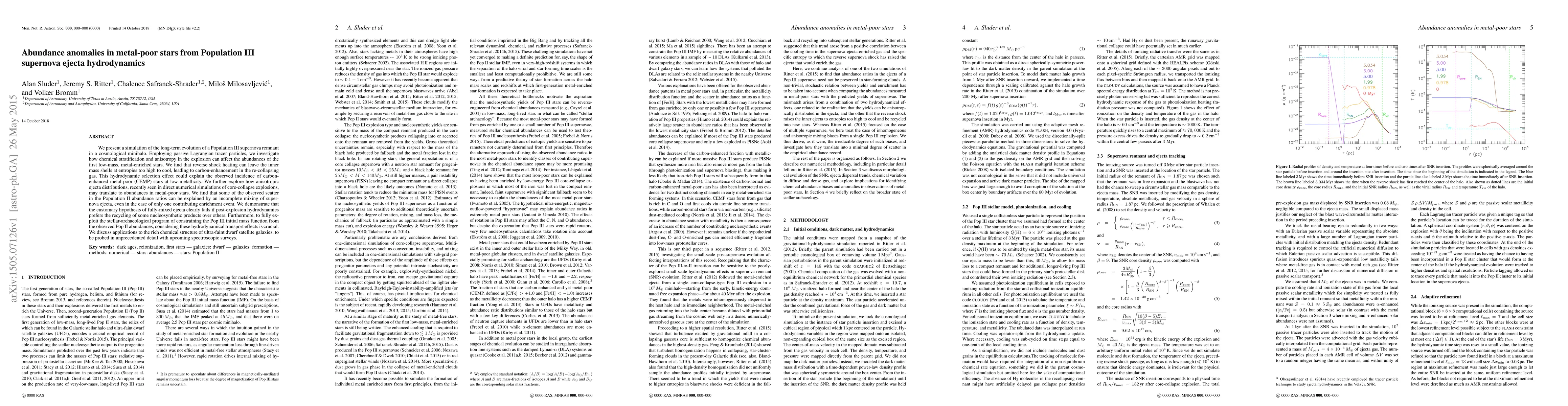 We present a simulation of the long-term evolution of a Population III supernova remnant in a cosmological minihalo. Employing passive Lagrangian tracer particles, we investigate how chemical stratification and anisotropy in the explosion can affect the abundances of the first low-mass, metal-enriched stars. We find that reverse shock heating can leave the inner mass shells at entropies too high to cool, leading to carbon-enhancement in the re-collapsing gas. This hydrodynamic selection effect could explain the observed incidence of carbon-enhanced metal-poor (CEMP) stars at low metallicity. We further explore how anisotropic ejecta distributions, recently seen in direct numerical simulations of core-collapse explosions, may translate to abundances in metal-poor stars. We find that some of the observed scatter in the Population II abundance ratios can be explained by an incomplete mixing of supernova ejecta, even in the case of only one contributing enrichment event. We demonstrate that the customary hypothesis of fully-mixed ejecta clearly fails if post-explosion hydrodynamics prefers the recycling of some nucleosynthetic products over others. Furthermore, to fully exploit the stellar-archaeological program of constraining the Pop III initial mass function from the observed Pop II abundances, considering these hydrodynamical transport effects is crucial. We discuss applications to the rich chemical structure of ultra-faint dwarf satellite galaxies, to be probed in unprecedented detail with upcoming spectroscopic surveys.