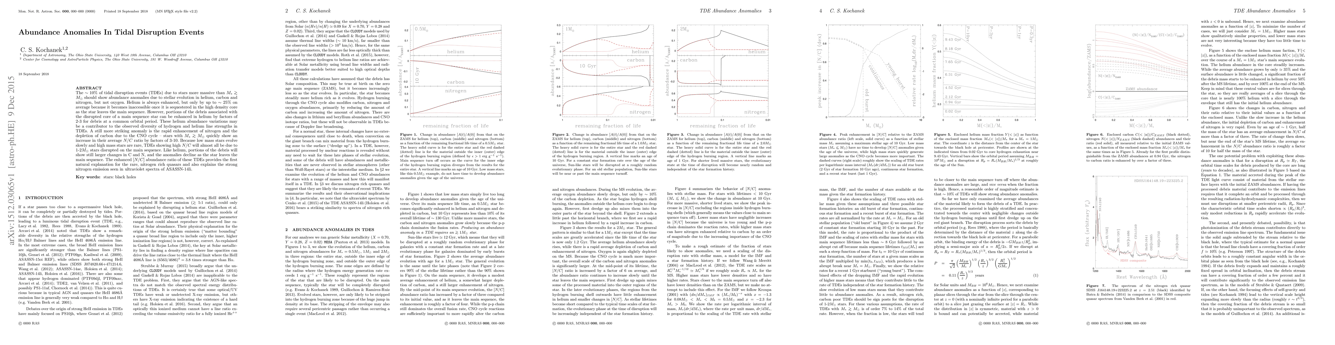 Tidal disruption events reveal anomalies in abundance ratios of helium, nitrogen, and carbon due to stellar evolution in massive stars, which may explain rare quasars and strong nitrogen emission.