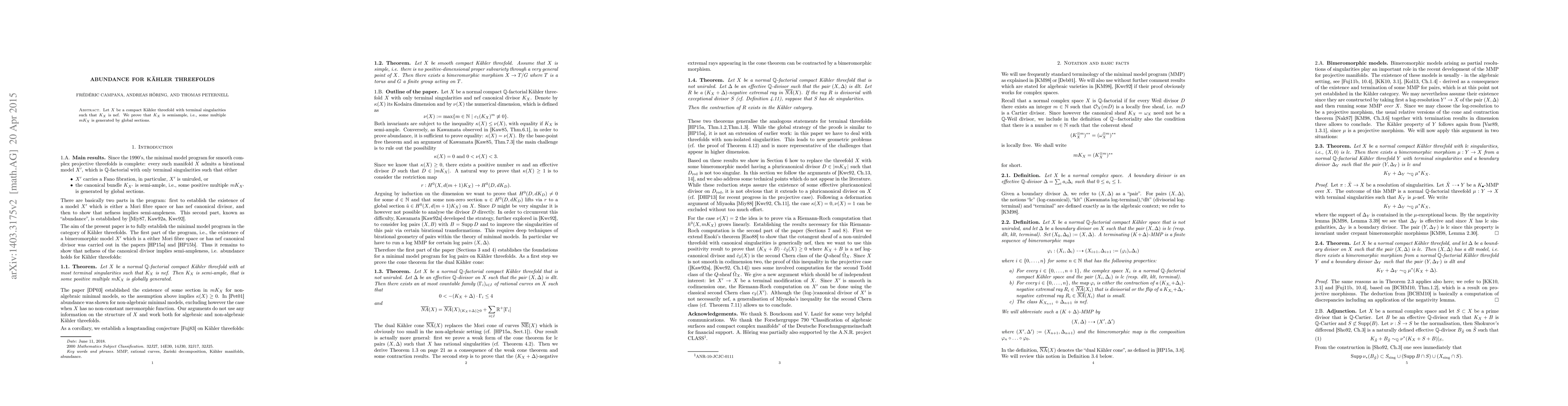 Summary: The research proves that for a compact Kähler threefold X with terminal singularities where the canonical divisor K_X is nef, K_X is also semiample. This establishes a key property in the study of complex algebraic geometry.