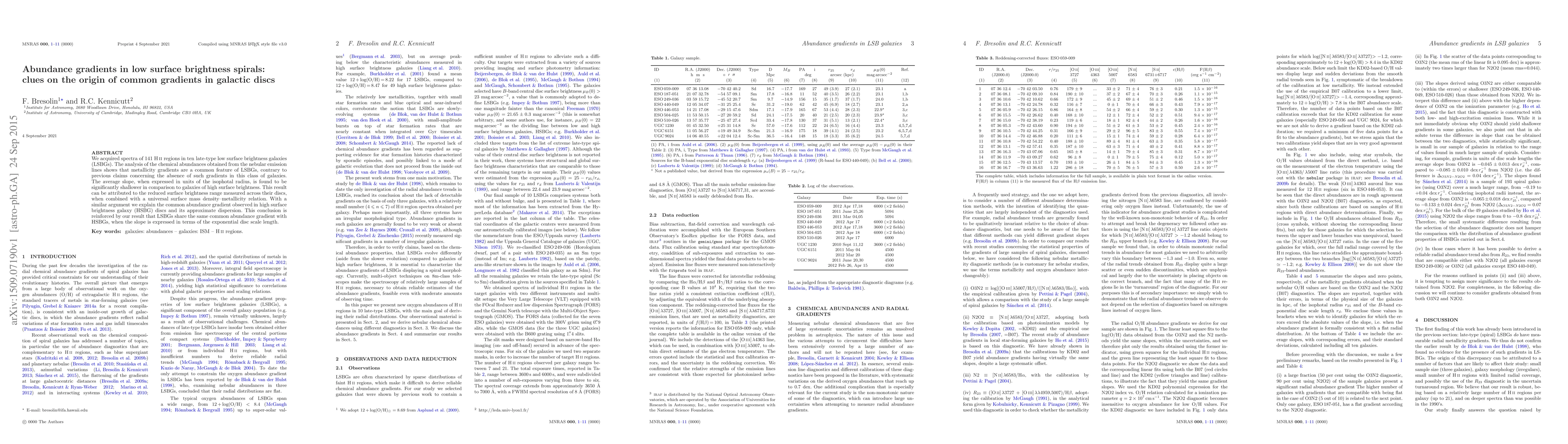 We acquired spectra of 141 HII regions in ten late-type low surface brightness galaxies (LSBGs). The analysis of the chemical abundances obtained from the nebular emission lines shows that metallicity gradients are a common feature of LSBGs, contrary to previous claims concerning the absence of such gradients in this class of galaxies. The average slope, when expressed in units of the isophotal radius, is found to be significantly shallower in comparison to galaxies of high surface brightness. This result can be attributed to the reduced surface brightness range measured across their discs, when combined with a universal surface mass density-metallicity relation. With a similar argument we explain the common abundance gradient observed in high surface brightness galaxy (HSBG) discs and its approximate dispersion. This conclusion is reinforced by our result that LSBGs share the same common abundance gradient with HSBGs, when the slope is expressed in terms of the exponential disc scale length.