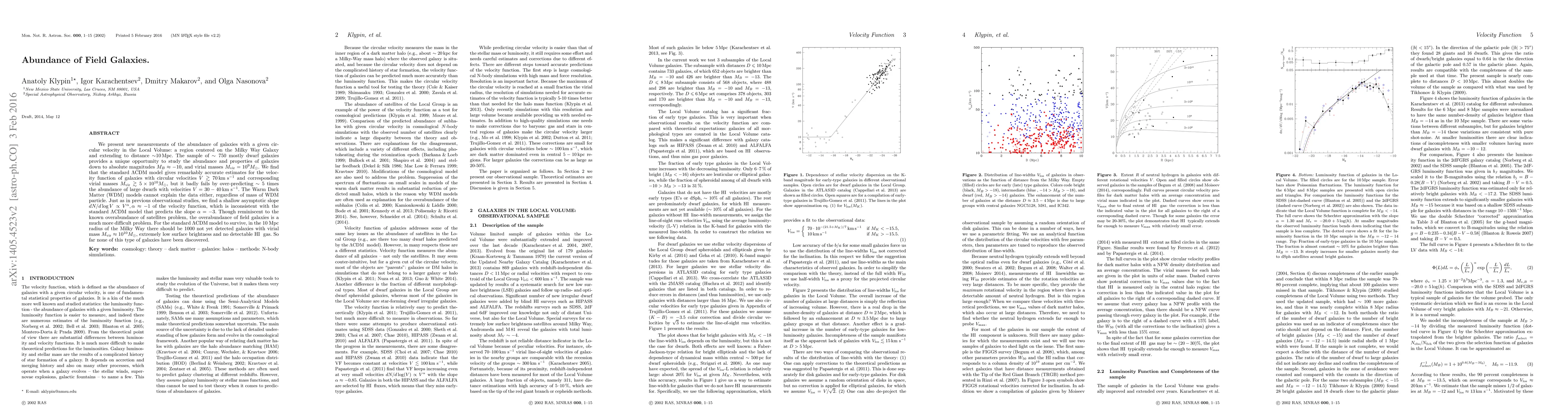 We present new measurements of the abundance of galaxies with a given circular velocity in the Local Volume: a region centered on the Milky Way Galaxy and extending to distance 10Mpc. The sample of 750 mostly dwarf galaxies provides a unique opportunity to study the abundance and properties of galaxies down to absolute magnitudes MB= -10, and virial masses Mvir= 1e9Msun. We find that the standard LCDM model gives remarkably accurate estimates for the velocity function of galaxies with circular velocities V>60kms and corresponding virial masses Mvir> 3e10Msun, but it badly fails by over-predicting 5 times the abundance of large dwarfs with velocities V= 30-50kms. The Warm Dark Matter models cannot explain the data either, regardless of mass of the WDM particle. Just as in previous observational studies, we find a shallow asymptotic slope dN/dlog V = V**alpha, alpha =-1 of the velocity function, which is inconsistent with the standard LCDM model that predicts the slope alpha =-3. Though reminiscent to the known overabundance of satellites problem, the overabundance of field galaxies is a much more difficult problem. For the LCDM model to survive, in the 10Mpc radius of the Milky Way there should be 1000 dark galaxies with virial mass Mvir= 1e10Msun, extremely low surface brightness and no detectable HI gas. So far none of this type of galaxies have been discovered.
