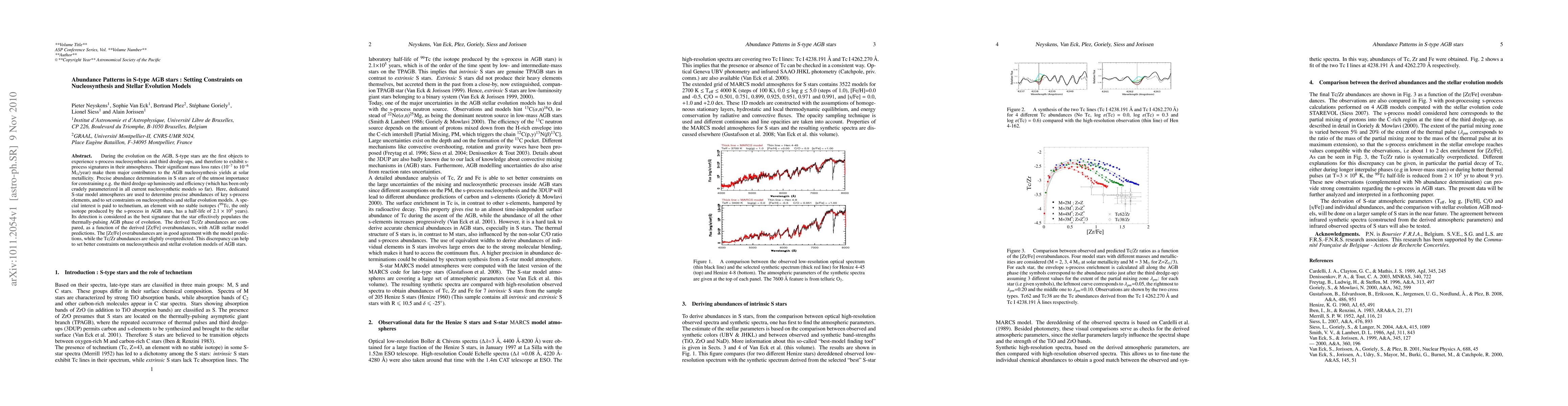 During the evolution on the AGB, S-type stars are the first objects to experience s-process nucleosynthesis and third dredge-ups, and therefore to exhibit sprocess signatures in their atmospheres. Their significant mass loss rates (10^-7 to 10^-6 M*/year) make them major contributors to the AGB nucleosynthesis yields at solar metallicity. Precise abundance determinations in S stars are of the utmost importance for constraining e.g. the third dredge-up luminosity and efficiency (which has been only crudely parameterized in all current nucleosynthetic models so far). Here, dedicated S-star model atmospheres are used to determine precise abundances of key s-process elements, and to set constraints on nucleosynthesis and stellar evolution models. A special interest is paid to technetium, an element with no stable isotopes (99Tc, the only isotope produced by the s-process in AGB stars, has a half-life of 2.1 x 10^5 years). Its detection is considered as the best signature that the star effectively populates the thermally-pulsing AGB phase of evolution. The derived Tc/Zr abundances are compared, as a function of the derived [Zr/Fe] overabundances, with AGB stellar model predictions. The [Zr/Fe] overabundances are in good agreement with the model predictions, while the Tc/Zr abundances are slightly overpredicted. This discrepancy can help to set better constraints on nucleosynthesis and stellar evolution models of AGB stars.