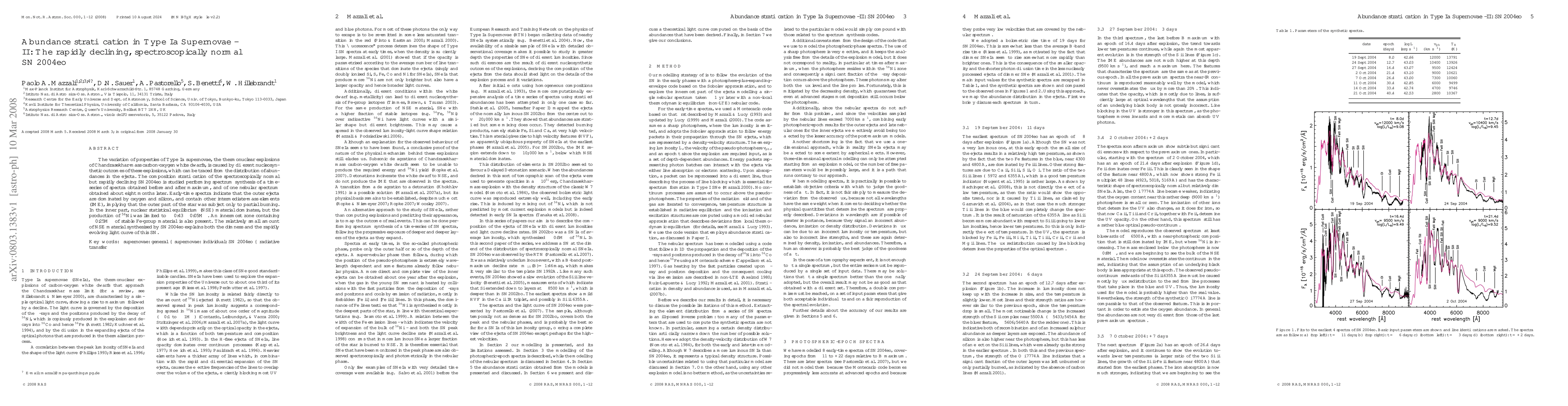 Researchers studied the abundance stratification of a Type Ia supernova, SN 2004eo, to understand its dimness and rapidly evolving light curve. They found that the explosion's outer ejecta were dominated by oxygen and silicon, while the inner part produced a limited amount of nickel, explaining both the supernova's brightness and evolution.