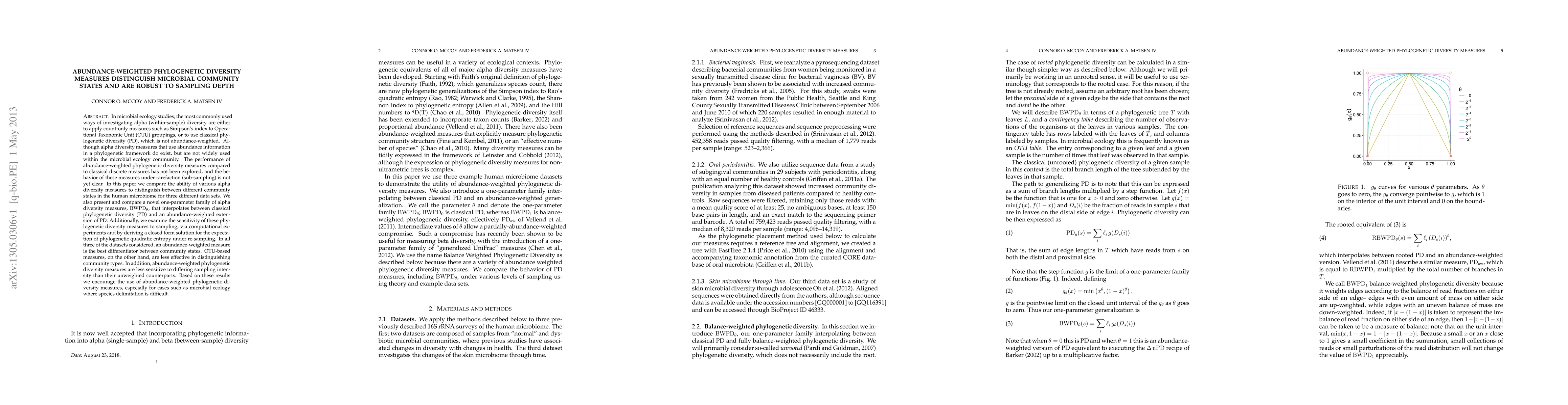 This paper introduces abundance-weighted phylogenetic diversity measures, BWPD_\theta, which outperform traditional OTU-based measures in distinguishing microbial community states in human microbiome datasets. These new measures are also more robust to variations in sampling depth compared to classical phylogenetic diversity measures.