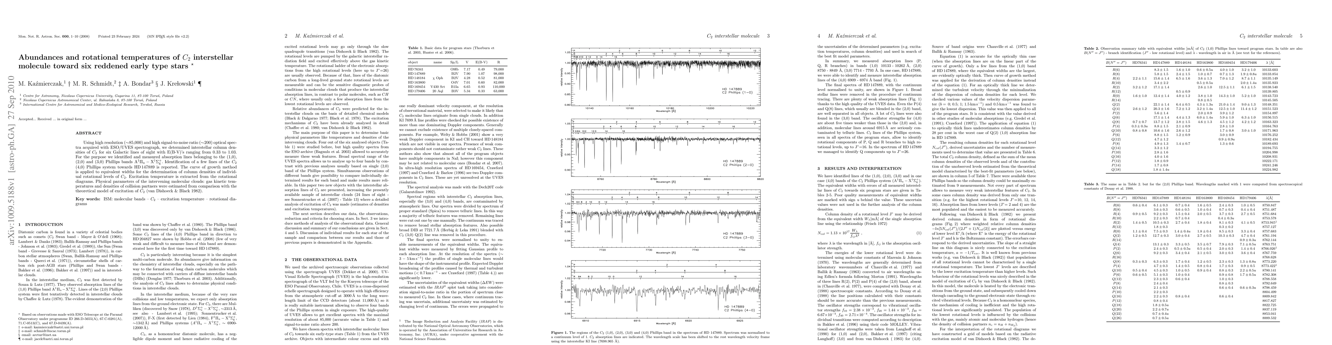 This study uses high-resolution optical spectra to determine the column densities of the C2 molecule in six interstellar lines of sight, employing the curve-of-growth method and rotational diagrams to estimate physical parameters like gas kinetic temperatures and densities. The research identifies absorption lines from multiple Phillips bands and reports on the C2 (4, 0) system towards HD 147889.