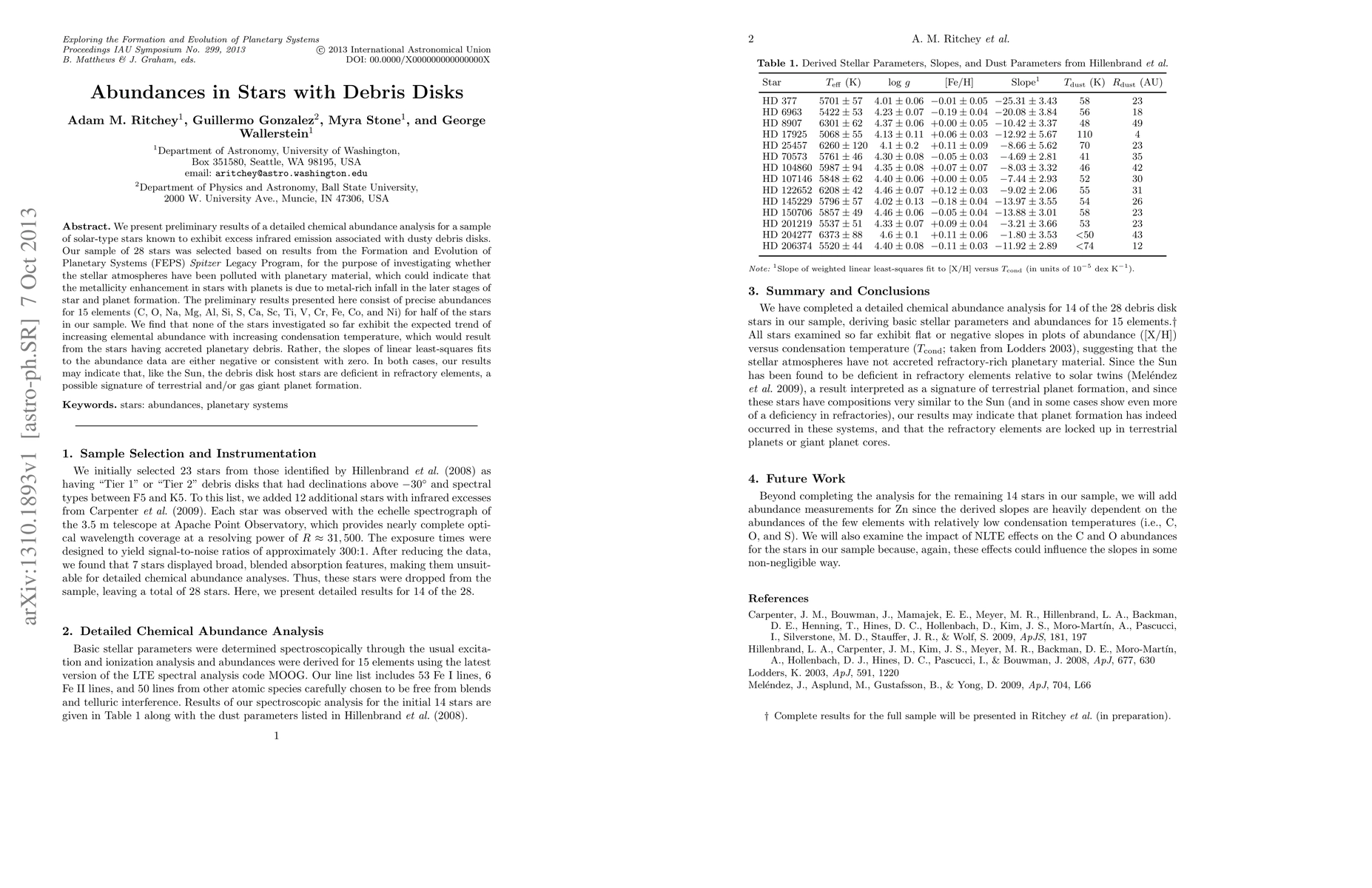 Researchers analyzed 28 stars with debris disks to see if they had been polluted with planetary material, but found that these stars actually lack certain key elements, suggesting that the formation of planets may not involve accretion of debris.