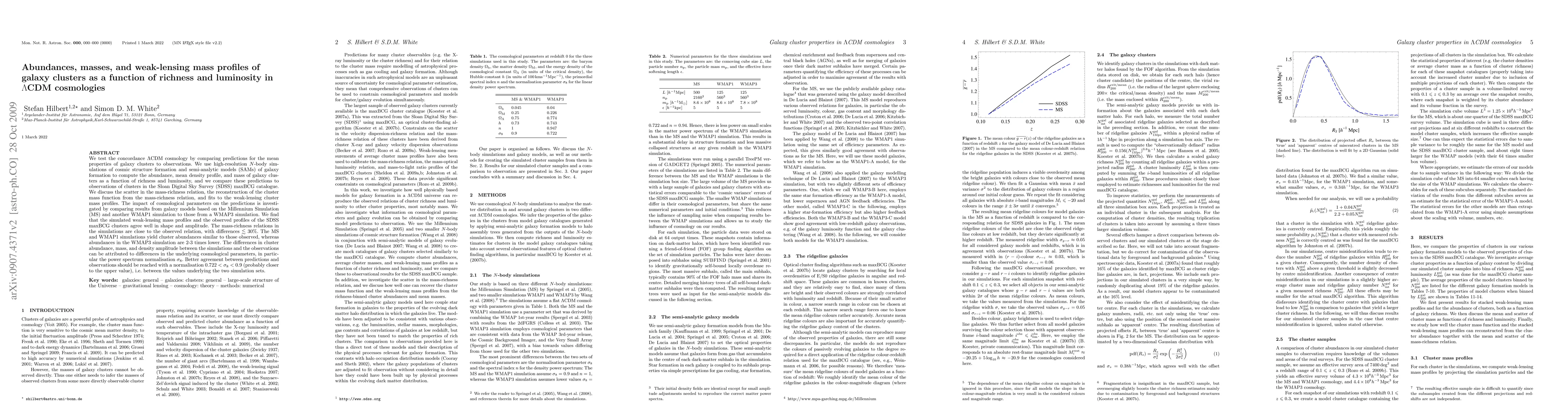 models based on the Millennium Simulation (MS) and another WMAP1 simulation to