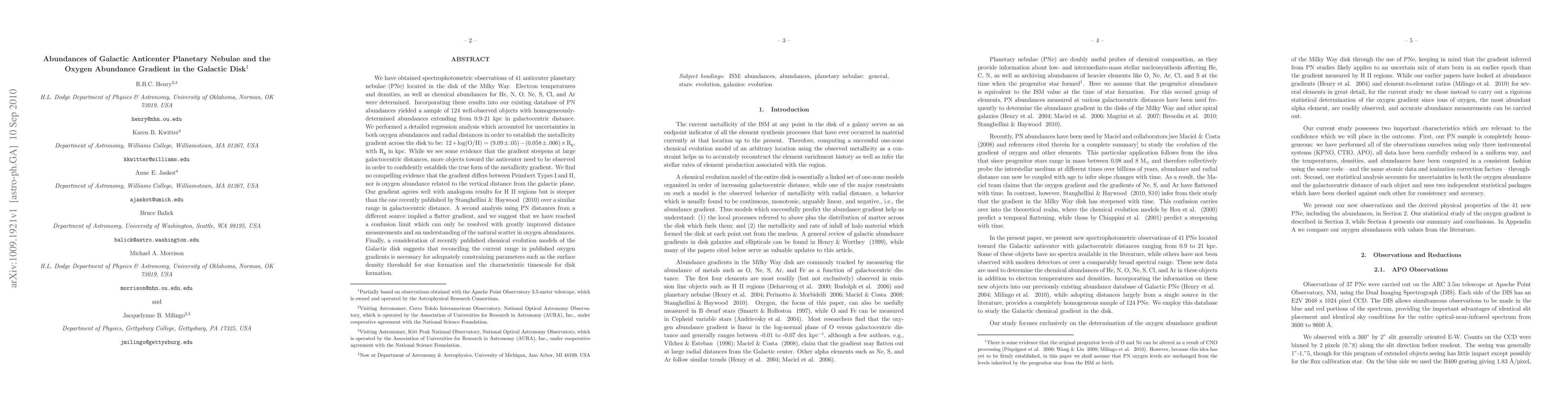This study analyzes the abundances of 41 anticenter planetary nebulae to determine the oxygen abundance gradient in the Milky Way's disk, finding a gradient of 12+log(O/H)=(9.09+/-.05) - (0.058+/-.006) x Rg, with Rg in kpc. The results suggest the need for improved distance measurements and a better understanding of natural abundance scatter to reconcile the range of published oxygen gradients.
