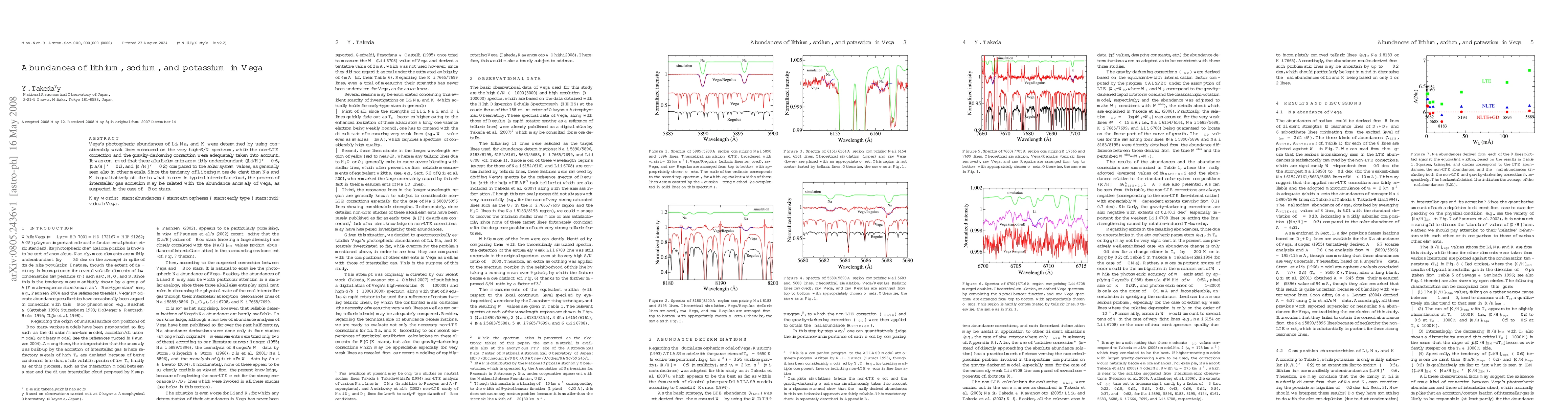 Vega's photospheric abundances of Li, Na, and K were determined by using considerably weak lines measured on the very high-S/N spectrum, while the non-LTE correction and the gravity-darkening correction were adequately taken into account. It was confirmed that these alkali elements are mildly underabundant ([Li/H] ~ -0.6, [Na/H] ~ -0.3, and [K/H] ~ -0.2) compared to the solar system values, as generally seen also in other metals. Since the tendency of Li being more deficient than Na and K is qualitatively similar to what is seen in typical interstellar cloud, the process of interstellar gas accretion may be related with the abundance anomaly of Vega, as suspected in the case of lambda Boo stars.