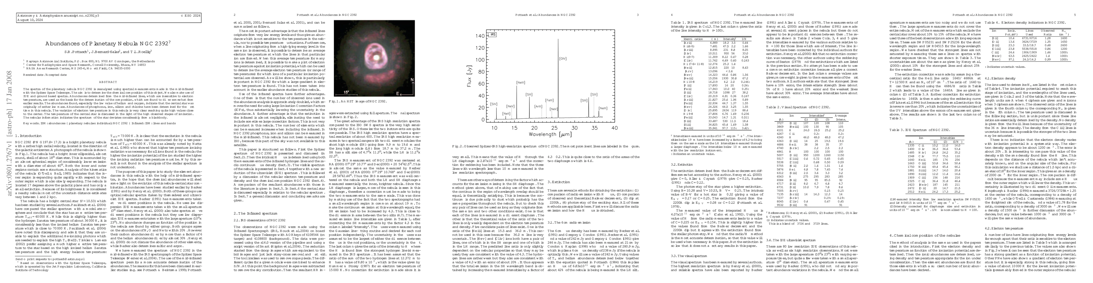 The spectra of the planetary nebula NGC2392 is reanalysed using spectral measurements made in the mid-infrared with the Spitzer Space Telescope. The aim is to determine the chemical composition of this object. We also make use of IUE and ground based spectra. Abundances determined from the mid-infrared lines, which are insensitive to electron temperature, are used as the basis for the determination of the composition, which are found to differ somewhat from earlier results. The abundances found, especially the low value of helium and oxygen, indicate that the central star was originally of rather low mass. Abundances of phosphorus, iron, silicon and chlorine have been determined for the first time in this nebula. The variation of electron temperature in this nebula is very clear reaching quite high values close to the center. The temperature of the central star is discussed in the light of the high observed stages of ionization. The nebular information indicates the spectrum of the star deviates considerably from a blackbody.