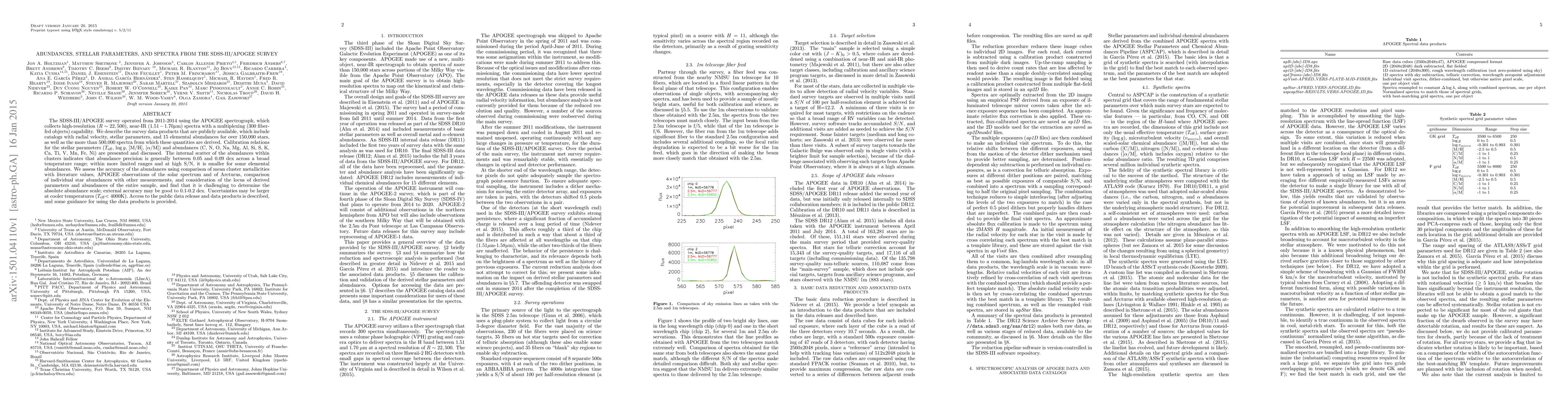 The SDSS-III/APOGEE survey provides high-resolution near-IR spectra for over 150,000 stars, yielding detailed catalogs of stellar parameters and 15 elemental abundances. The survey's precision for elemental abundances is generally between 0.05 and 0.09 dex, with challenges in determining the absolute abundance scale.