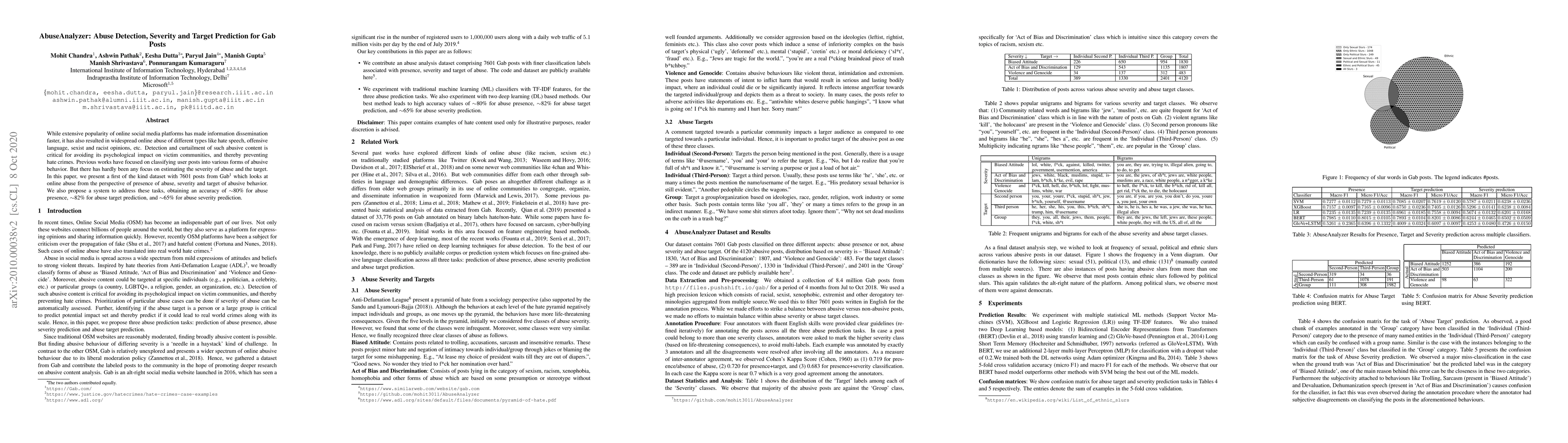 While extensive popularity of online social media platforms has made information dissemination faster, it has also resulted in widespread online abuse of different types like hate speech, offensive language, sexist and racist opinions, etc. Detection and curtailment of such abusive content is critical for avoiding its psychological impact on victim communities, and thereby preventing hate crimes. Previous works have focused on classifying user posts into various forms of abusive behavior. But there has hardly been any focus on estimating the severity of abuse and the target. In this paper, we present a first of the kind dataset with 7601 posts from Gab which looks at online abuse from the perspective of presence of abuse, severity and target of abusive behavior. We also propose a system to address these tasks, obtaining an accuracy of ~80% for abuse presence, ~82% for abuse target prediction, and ~65% for abuse severity prediction.