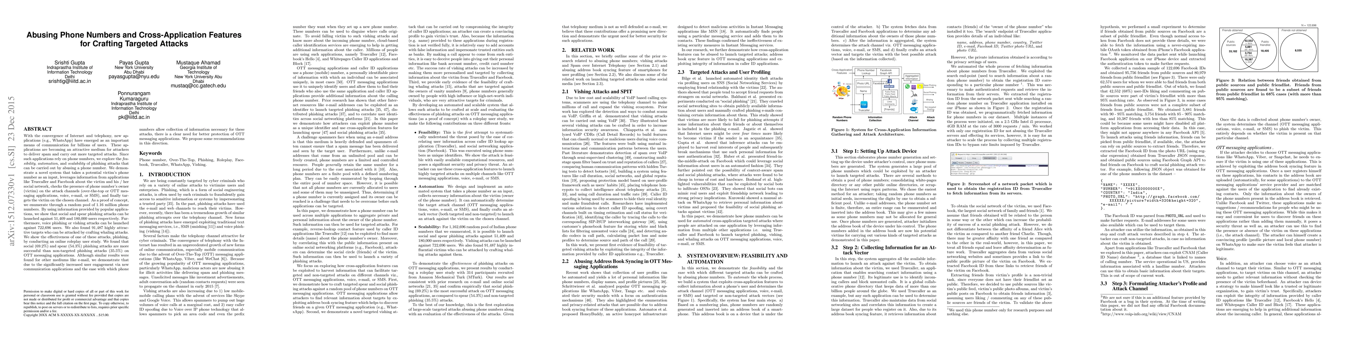 This paper explores the potential for targeted phishing attacks leveraging phone numbers and cross-application features, demonstrating a system that identifies and targets users via various communication channels. The study shows that targeted attacks are significantly more effective than non-targeted ones, highlighting the need for enhanced security in over-the-top messaging applications.