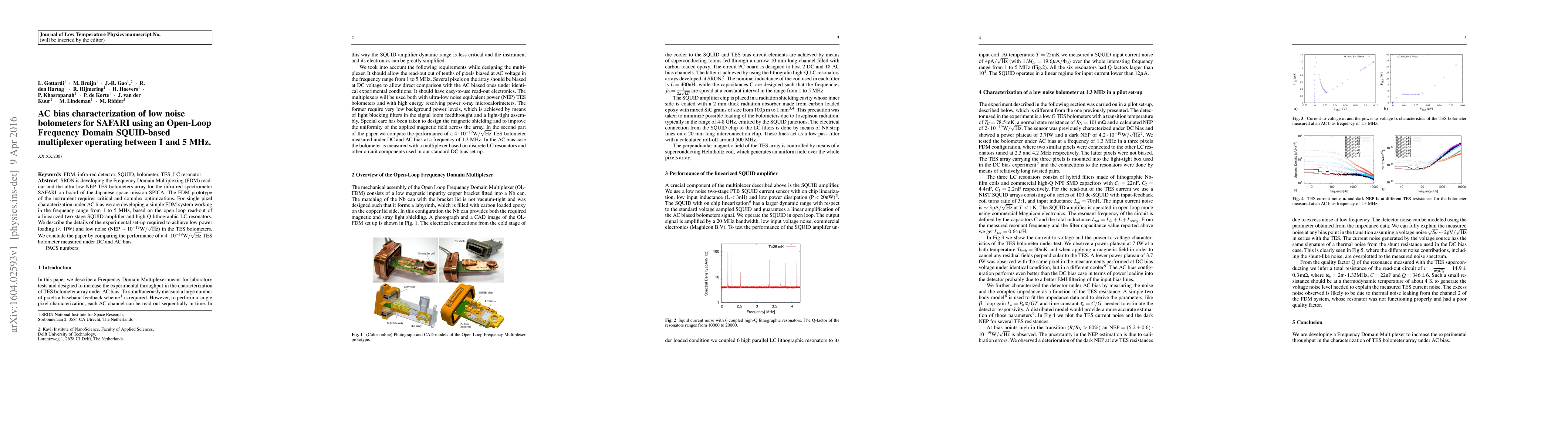 This paper details the development of an open-loop FDM system for characterizing low noise TES bolometers for the SAFARI instrument on the SPICA mission, achieving low power loading and noise. The study compares the performance of a TES bolometer under DC and AC bias conditions.