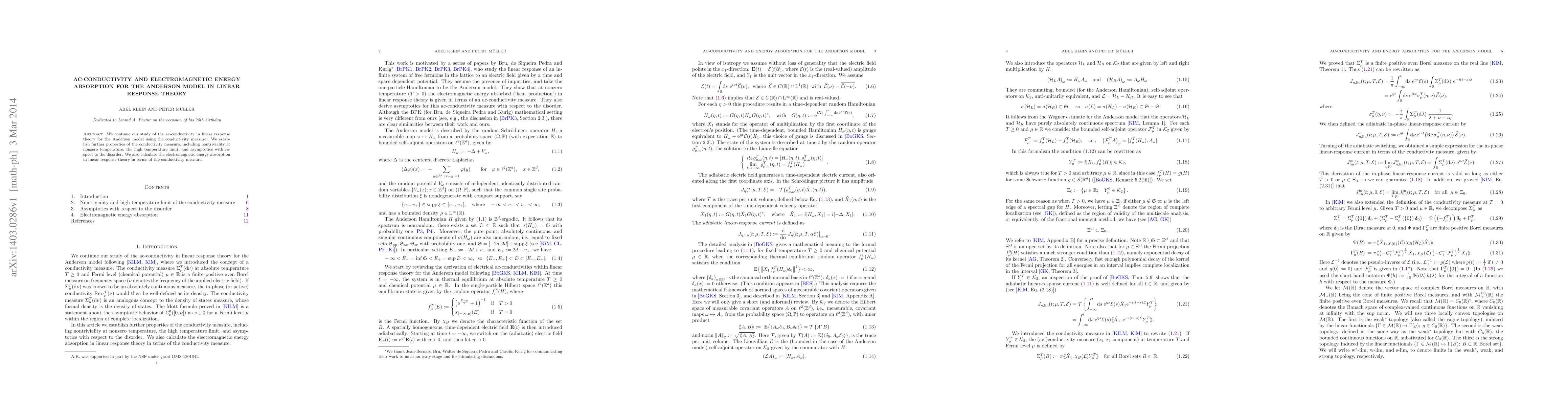 The paper presents a detailed analysis of the conductivity measure for the Anderson model, extending its properties and linking it to electromagnetic energy absorption in linear response theory.