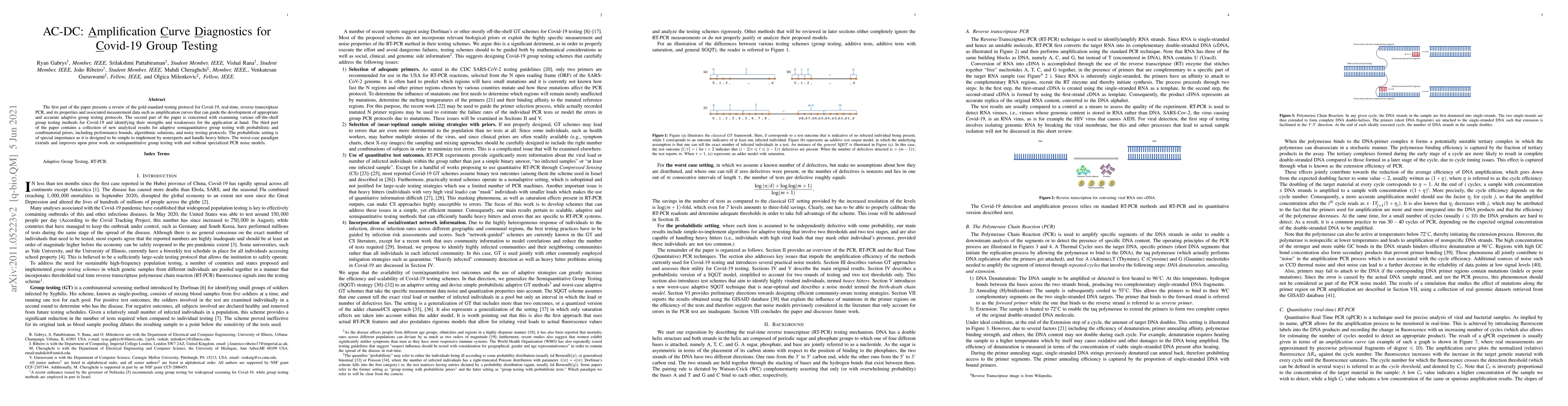 The first part of the paper presents a review of the gold-standard testing protocol for Covid-19, real-time, reverse transcriptase PCR, and its properties and associated measurement data such as amplification curves that can guide the development of appropriate and accurate adaptive group testing protocols. The second part of the paper is concerned with examining various off-the-shelf group testing methods for Covid-19 and identifying their strengths and weaknesses for the application at hand. The third part of the paper contains a collection of new analytical results for adaptive semiquantitative group testing with probabilistic and combinatorial priors, including performance bounds, algorithmic solutions, and noisy testing protocols. The probabilistic setting is of special importance as it is designed to be simple to implement by nonexperts and handle heavy hitters. The worst-case paradigm extends and improves upon prior work on semiquantitative group testing with and without specialized PCR noise models.
