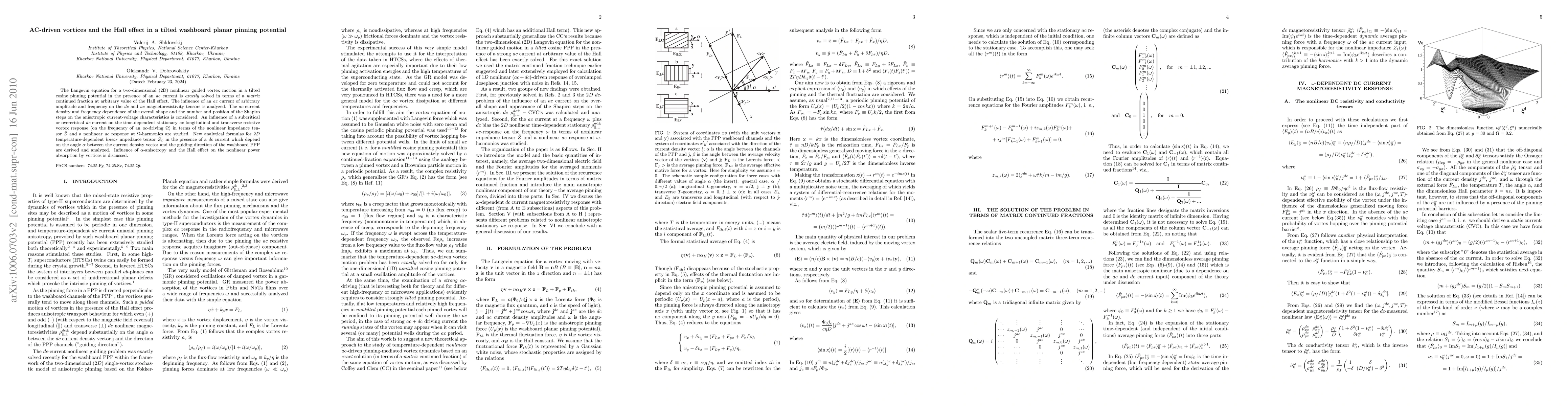 The Langevin equation for a two-dimensional (2D) nonlinear guided vortex motion in a tilted cosine pinning potential in the presence of an ac is exactly solved in terms of a matrix continued fraction at arbitrary value of the Hall effect. The influence of an ac of arbitrary amplitude and frequency on the dc and ac magnetoresistivity tensors is analyzed. The ac density and frequency dependence of the overall shape and the number and position of the Shapiro-like steps on the anisotropic current-voltage characteristics are considered. The influence of a subcritical or overcritical dc on the time-dependent stationary ac longitudinal and transverse resistive vortex responses (on the frequency of an ac drive W) in terms of the nonlinear impedance tensor Z and the nonlinear ac response at W-harmonics are studied. Analytical formulas for 2D temperature-dependent linear impedance tensor Zl in the presence of a dc which depend on the angle a between the current-density vector and the guiding direction of the washboard planar pinning potential are derived and analyzed. Influence of a-anisotropy and the Hall effect on the nonlinear power absorption by vortices is discussed.