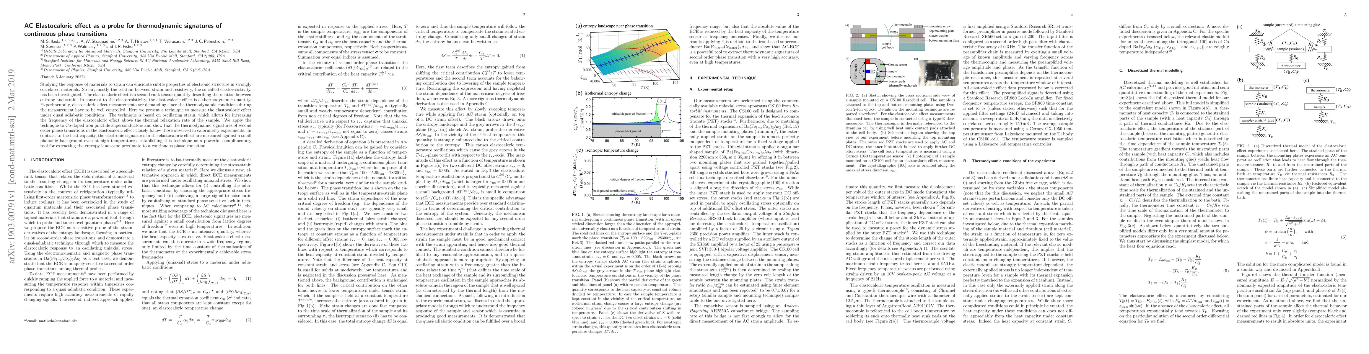 Studying the response of materials to strain can elucidate subtle properties of electronic structure in strongly correlated materials. So far, mostly the relation between strain and resistivity, the so called elastoresistivity, has been investigated. The elastocaloric effect is a second rank tensor quantity describing the relation between entropy and strain. In contrast to the elastoresistivity, the elastocaloric effect is a thermodynamic quantity. Experimentally, elastocaloric effect measurements are demanding since the thermodynamic conditions during the measurement have to be well controlled. Here we present a technique to measure the elastocaloric effect under quasi adiabatic conditions. The technique is based on oscillating strain, which allows for increasing the frequency of the elastocaloric effect above the thermal relaxation rate of the sample. We apply the technique to Co-doped iron pnictide superconductors and show that the thermodynamic signatures of second order phase transitions in the elastocaloric effect closely follow those observed in calorimetry experiments. In contrast to the heat capacity, the electronic signatures in the elastocaloric effect are measured against a small phononic background even at high temperatures, establishing this technique as a powerful complimentary tool for extracting the entropy landscape proximate to a continuous phase transition.