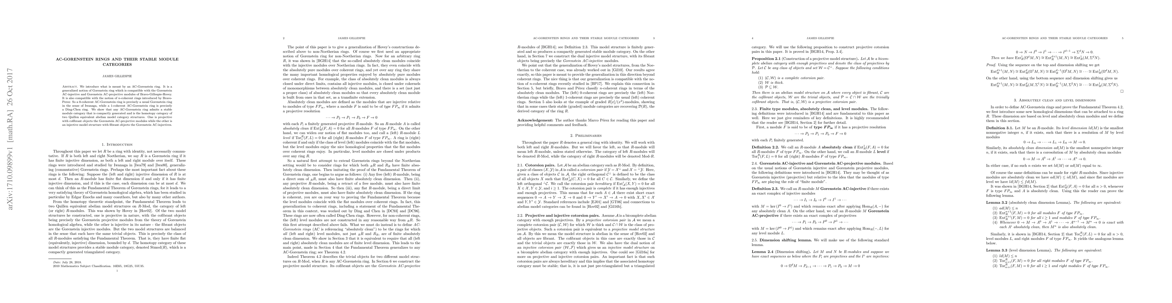 This paper introduces AC-Gorenstein rings and shows that they admit stable module categories with specific properties, which is a significant advancement in algebraic geometry and representation theory.