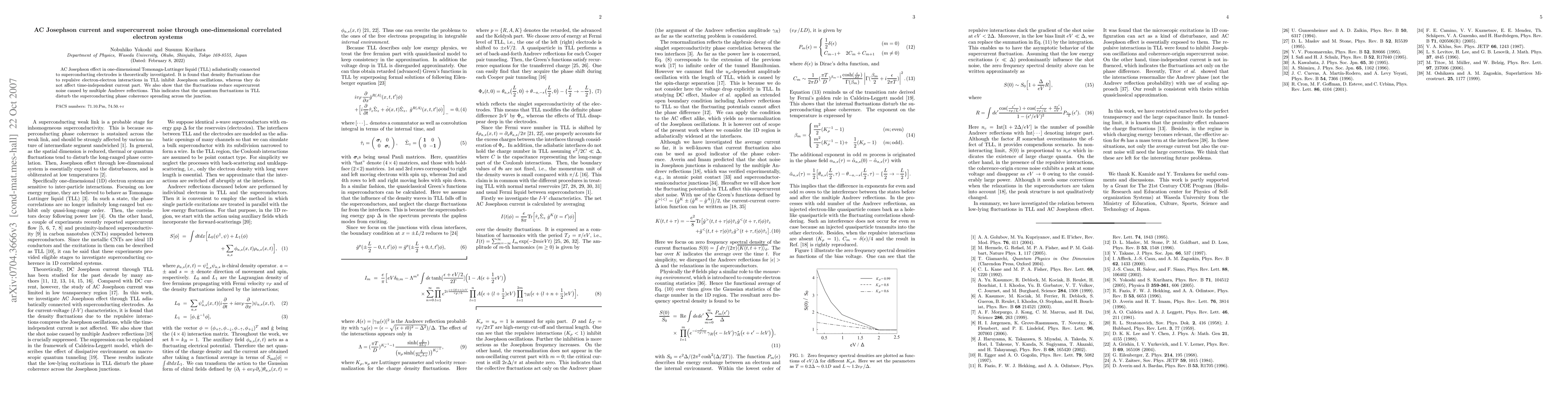 Summary: The study investigates AC Josephson effect in one-dimensional Tomonaga-Luttinger liquids connected to superconducting electrodes, finding that density fluctuations inhibit Josephson oscillations but not the time-independent current. It also reveals that these fluctuations reduce supercurrent noise, indicating quantum fluctuations disrupt superconducting phase coherence.