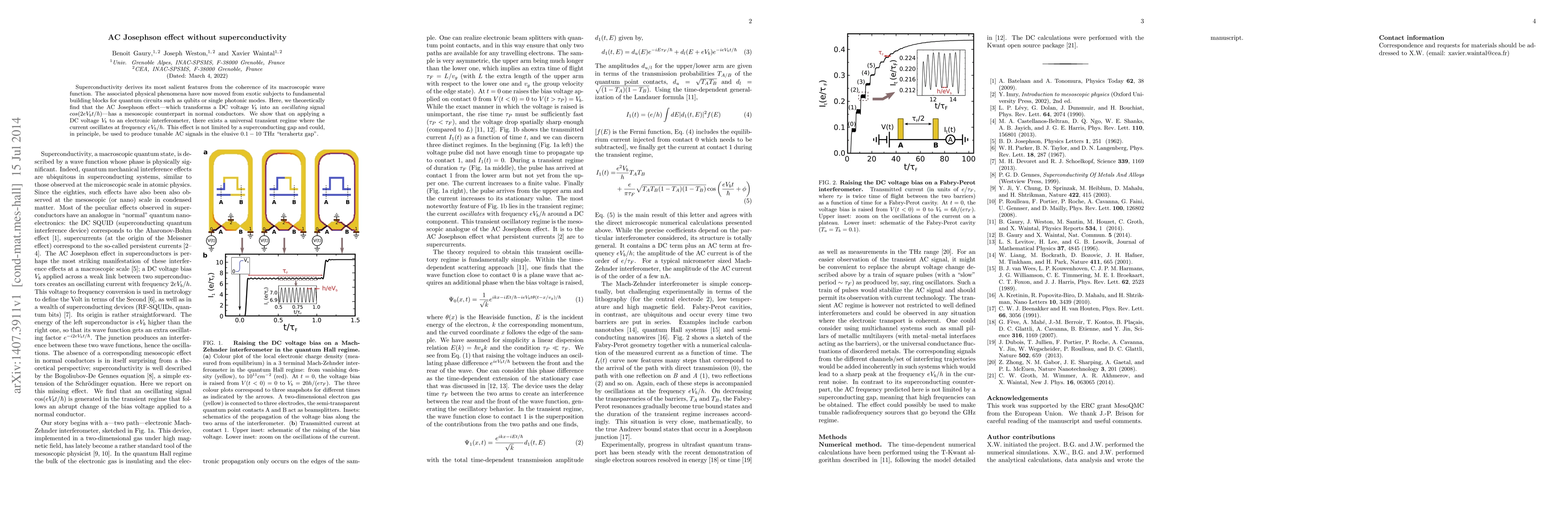 Superconductivity derives its most salient features from the coherence of its macroscopic wave function. The associated physical phenomena have now moved from exotic subjects to fundamental building blocks for quantum circuits such as qubits or single photonic modes. Here, we theoretically find that the AC Josephson effect---which transforms a DC voltage $V_b$ into an oscillating signal $cos(2eV_b t/ \hbar)$---has a mesoscopic counterpart in normal conductors. We show that on applying a DC voltage $V_b$ to an electronic interferometer, there exists a universal transient regime where the current oscillates at frequency $eV_b/h$. This effect is not limited by a superconducting gap and could, in principle, be used to produce tunable AC signals in the elusive $0.1-10$ THz "terahertz gap".