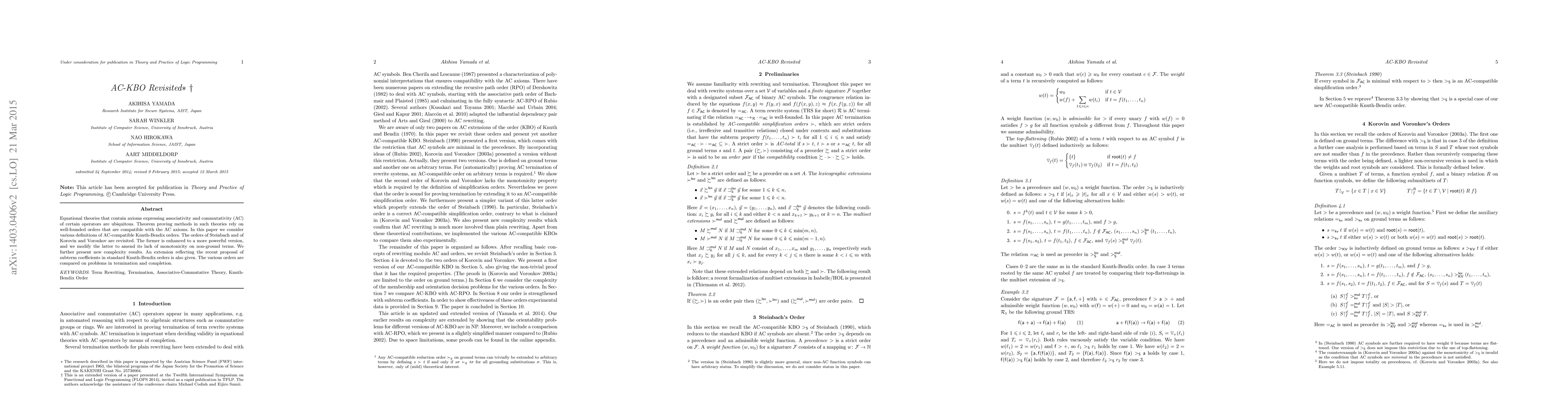 This paper revisits and improves Knuth-Bendix order definitions for theorem proving in theories with associative and commutative (AC) operators. It enhances Steinbach's order and corrects Korovin and Voronkov's lack of monotonicity, introducing new complexity results and extending orders with subterm coefficients. The paper compares these orders' performance in termination and completion problems.