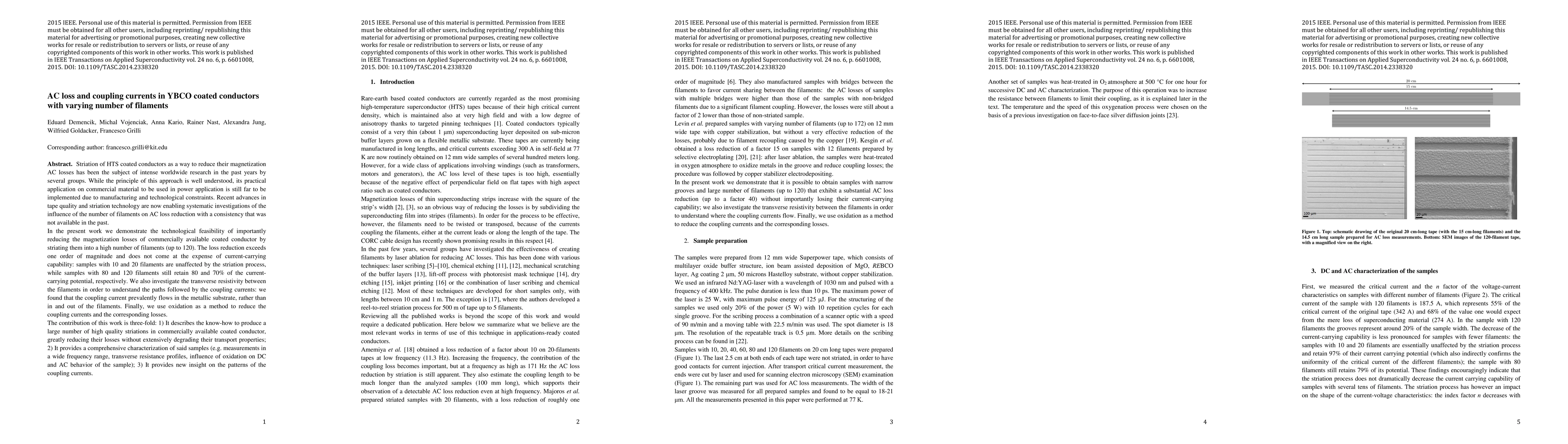 Striation of HTS coated conductors (CCs) as a way to reduce their magnetization AC losses has been the subject of intense research in the past years by several groups. While the principle of this approach is well understood, its practical application on commercial material to be used in power application is still far to be implemented due to manufacturing and technological constraints. Recent advances in tape quality and striation technology are now enabling systematic investigations of the influence of the number of filaments on AC loss reduction with a consistency that was not available in the past. In this work we demonstrate the technological feasibility of reducing the magnetization losses of commercially available CC by striating them into a high number of filaments (up to 120). The loss reduction exceeds one order of magnitude and does not come at the expense of current-carrying capability: samples with 10 and 20 filaments are unaffected by the striation process, while samples with 80 and 120 filaments still retain 80 and 70% of the current-carrying potential, respectively. We also investigate the transverse resistivity in order to understand the paths followed by the coupling currents: we found that the coupling current prevalently flows in the metallic substrate, rather than in and out of the filaments. Finally, we use oxidation as a method to reduce the coupling currents and losses. The contribution of this work is three-fold: 1) It describes the know-how to produce a large number of high quality striations in commercially available CCs, greatly reducing their losses without extensively degrading their transport properties; 2) It provides a comprehensive characterization of said samples (e.g. measurements in a wide frequency range, transverse resistance profiles, influence of oxidation on DC and AC behavior); 3) It provides new insight on the patterns of the coupling currents.