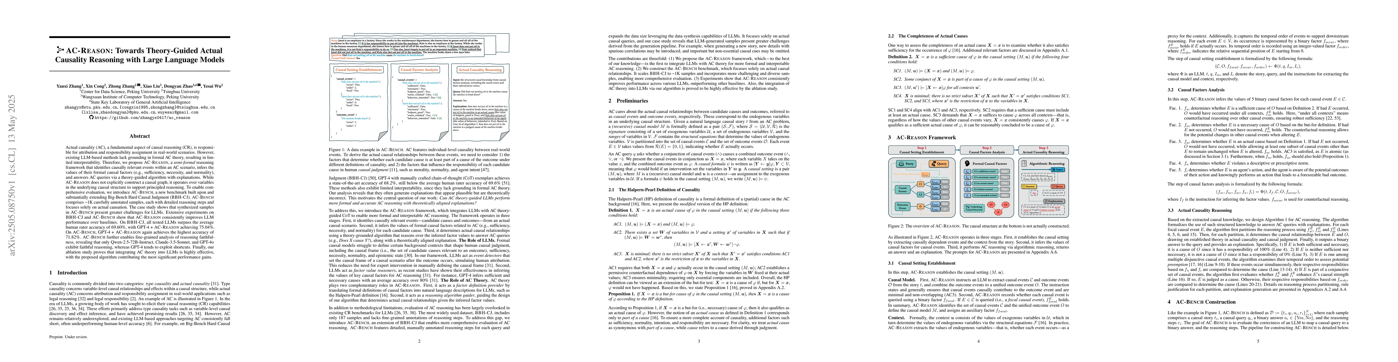 A new framework called AC-Reason improves large language model performance in actual causality reasoning tasks by incorporating theory-guided causality reasoning, outperforming existing methods on benchmarks with accuracy rates up to 75%.